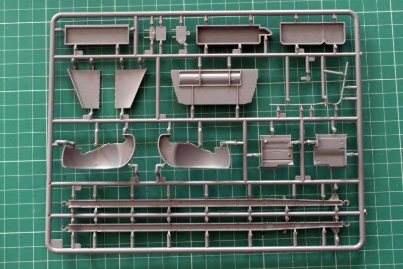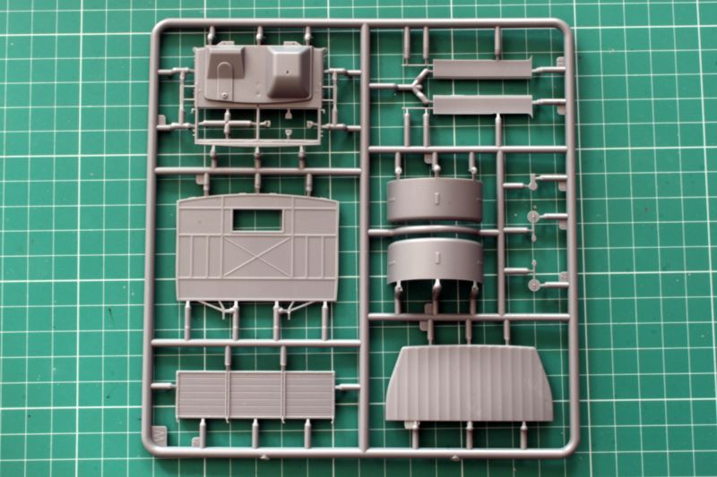 Potem zaczynają się różnice, ponieważ to co umieszczono na ramie z silnikiem różni się w znaczny sposób od siebie w przypadku obu wariantów ciężarówki. Wersja do przenoszenia haubicy miała szoferkę w wersji odkrytej oraz skrzynię ładunkową z niższymi burtami oraz poprzeczną ławeczką i zamkniętymi skrzynkami w przedniej części co znajdziemy na ramkach K, X i Y. Inne są także pewne elementy wyposażenia takie jak tylne błotniki,  kanistry – ramki G – trzy sztuki i oczywiście sama haubica, przy czym ramki A’ , F oraz E zawierające część jej elementów znane są z wcześniejszego zestawu tego producenta – 35028, umożliwiającego budowę miniatury haubicy Obice da 100/17 Mod. 16 w wersji polowej. Na potrzeby omawianego zestawu opracowano ramkę O, na której znajduje nowa rama i mechanizm obrotowy haubicy. Zestaw wyposażono także z wytoczoną z metalu lufę, którą możemy zastąpić tę z polistyrenu.