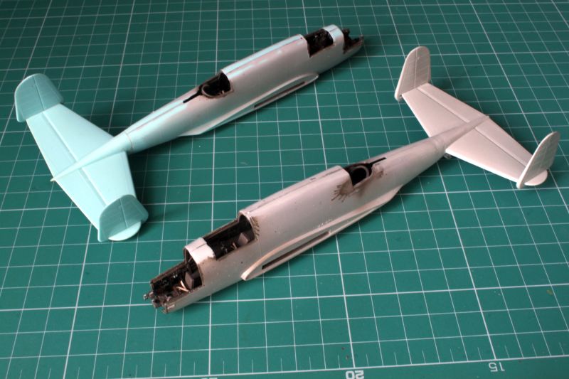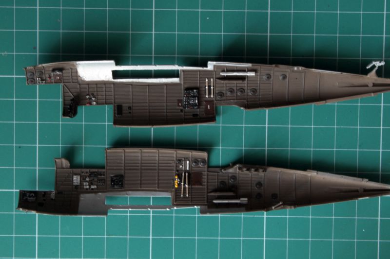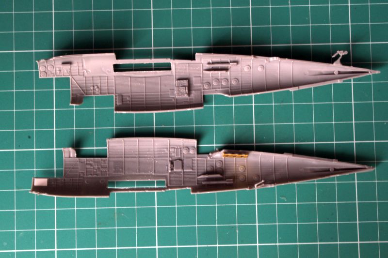 Spodziewałem się strasznej przeprawy ze sklejeniem w całość obu modeli z ZTS i spotkało mnie miłe rozczarowanie, ponieważ wczesny zestaw był spasowany niemal idealnie, zaś późniejszy miał nieco zwichrowane elementy, co jednak tylko w niewielkim stopniu utrudniało montaż. W tym modelu są dwa newralgiczne punkty. Pierwszy z nich to spasowanie kadłuba z częścią ogonową, niezależnie od wybranej wersji należy poświęcić im sporo uwagi, warto odchudzić nieco wykusz w kadłubie oraz wewnętrzną część kadłuba w sekcji ogonowej. Wtedy nawet może się obyć bez szpachli. Druga sprawa to spasowanie z kadłubem osłon kabiny, ja niestety zorientowałem się za późno, o czym dalej.