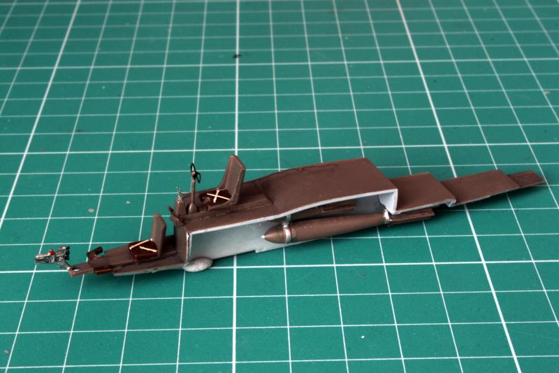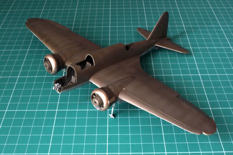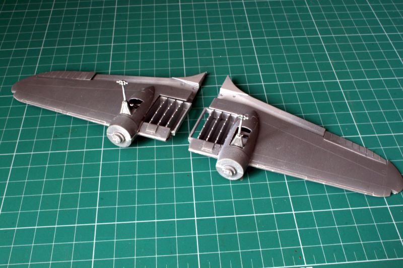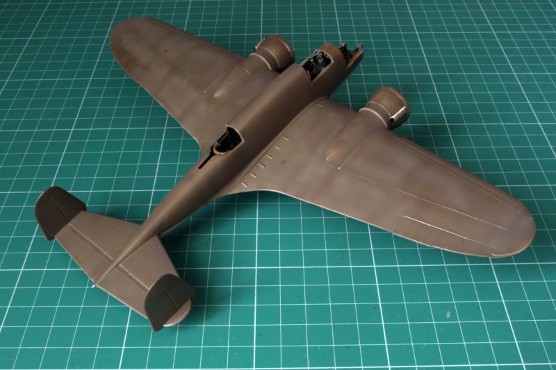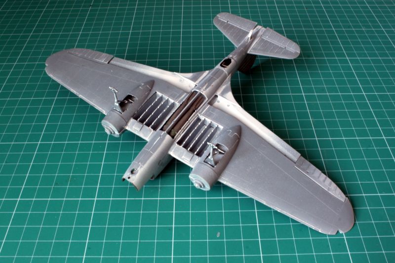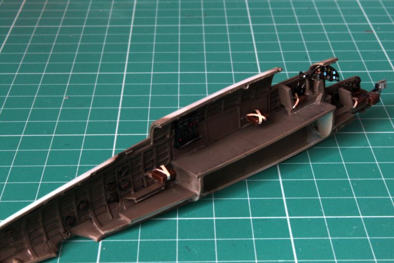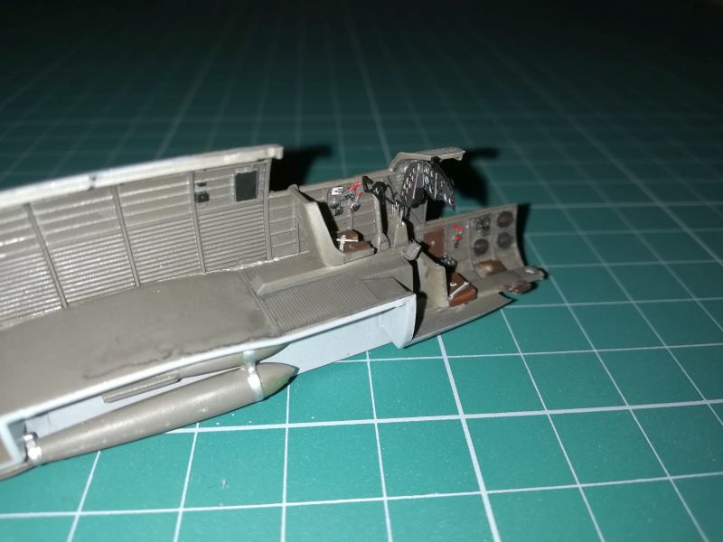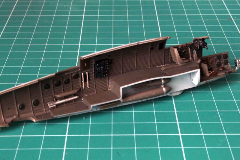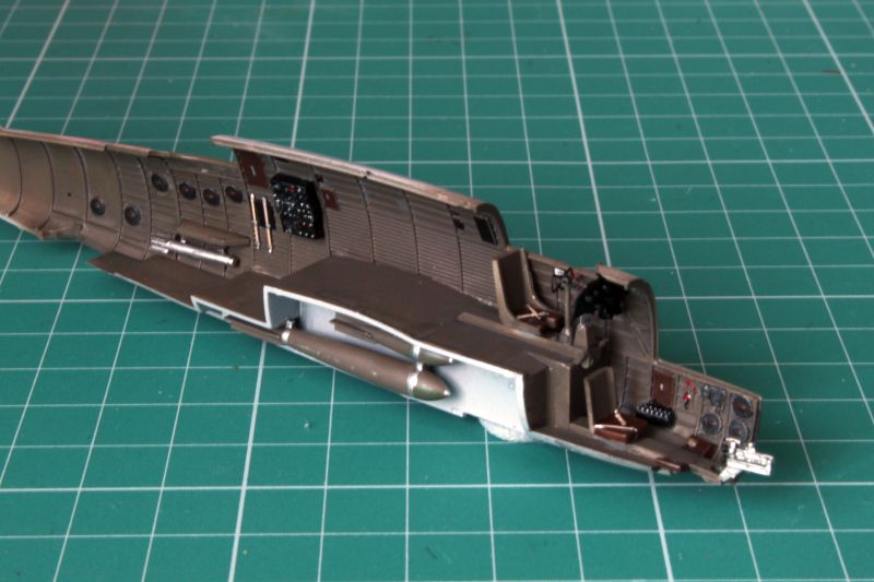 Mogłem teraz przystąpić do malowania wnętrza kadłubów u luków podwozia. Na temat kolorystki wnętrza Łosi ścierają się różne koncepcje i teorie, wszystkie jednak oscylują wokół tego, że wnętrze kabiny było malowane kolorem takim jak powierzchnie zewnętrzne, luki podwozia i komory bombowe w naturalnym wykończeniu aluminiowym.