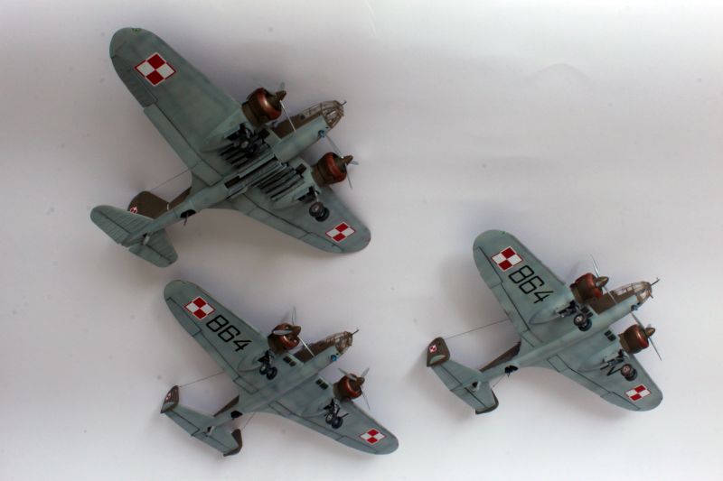 W ten sposób dotarłem do końca budowy moich Łośków. Nowy model z IBG Models to naprawdę świetny zestaw, godny polecenia każdemu. Doskonale opracowany i świetnie spasowany, mogą go kleić nawet modelarze o niewielkim doświadczeniu. W krótkim czasie możemy wykonać efektowną miniaturę samolotu, który w naszym kraju urósł do rango maszyny wręcz kultowej. Można teraz z czystym sumieniem stwierdzić, że Łoś z Pruszkowa może iść na modelarską emeryturę. Na mojej półce stoi on sklejony i cieszy oczy, przypomina dawne czasy. Drugi egzemplarz posiada mój  Ojciec, który zresztą zaszczepił we mnie modelarską pasję, kiedy podpatrywałem jak sklejał… Łosia, ale w skali 1/144. Może doczekamy się nowego zestawu także w tej skali?