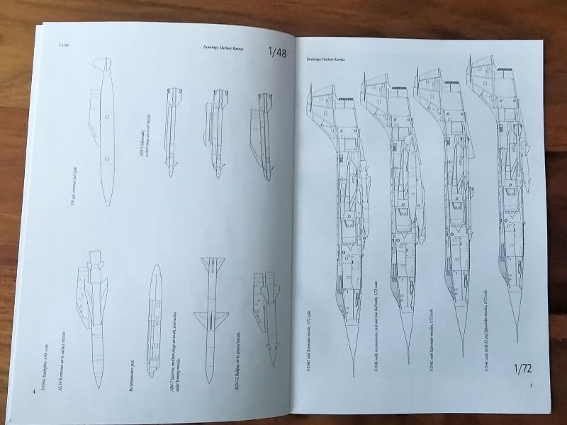 Zaczyna się od planów opracowanych w skali 1/72, zaś podwieszenia rozrysowano w podziałce 1/48. Plany ukazują także sposób podwieszenia konkretnych środków bojowych pod samolotem.