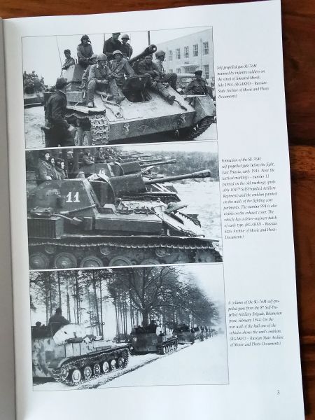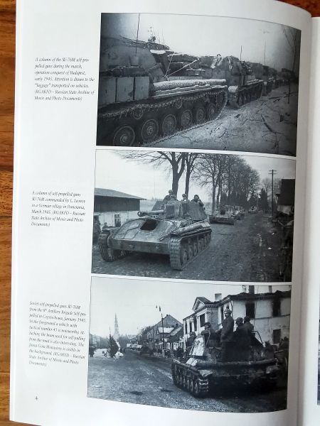 Pierwsza część obejmuje kilkanaście zdjęć historycznych, zrobionych w latach 1944 – 1945, oczywiście podczas działań wojennych. Są także zdjęcia z Polski, jedno z Pomorza z marca 1945r. (może okolice Koszalina lub Kołobrzegu?), jest to środkowe zdjęcie z prawej strony. Pod nim natomiast znajduje się fotografia przedstawiająca wkroczenie wojsk radzieckich do Częstochowy, zaś w tle widoczny jest klasztor na Jasnej Górze. Są także zdjęcia z formowania się 4-go Dywizjonu Artylerii Samobieżnej w Jastkowie koło Lublina, a także zdjęcia pojazdu zdobytego przez żołnierzy niemieckich. Wszystkie zamieszczone w tej części monografii zdjęcia mogą być inspiracją do stworzenia dioramy lub winietki.