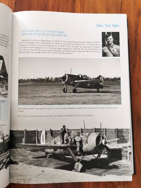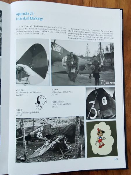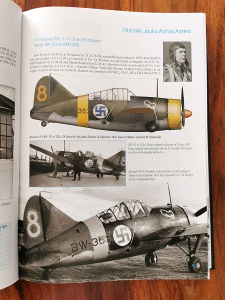 Ponieważ jak zaznaczyłem powyżej książka jest przede wszystkim o pilotach a o samolotach w nieco dalszej kolejności, nieco inny też jest sposób przedstawienia sylwetek barwnych samolotów fińskich asów. Nie są to duże sylwetki umieszczone pokazane tak jak w poprzednich publikacjach, są one nieco mniejsze umieszczone przez szerokość strony. Co jednak wcale nie zmniejsza ich atrakcyjności. Skoro mowa o zdjęciach, to też jest ich pokaźna ilość, zdjęcia są znakomitej jakości, nie od dziś wiadomo, że wydawca przykład do tego bardzo dużą wagę. Samoloty pokazano w przeróżnych sytuacjach, które mogą stanowić inspirację dla nie jednego modelarza, niezależnie od tego, czy budować będzie tylko model, czy też dioramę. Można tylko dostać rozdwojenia jaźni przy wyborze malowania. Na trzech Buffalo czy Fokkerach może się nie skończyć.