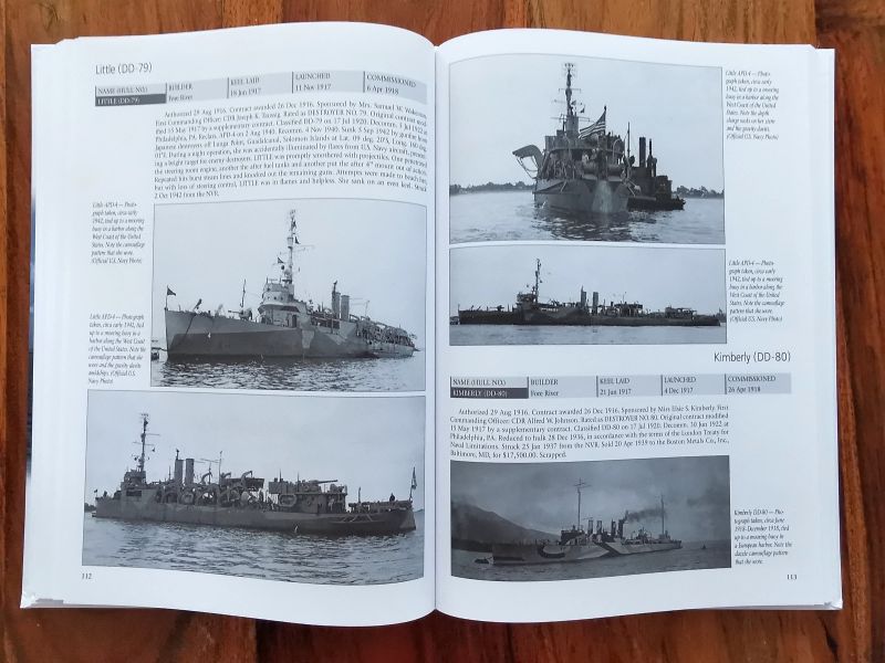 Czy też „gładkopokładowce” z racji charakterystycznego kształtu pokładu głównego. Były to okręty kilku zbliżonych do siebie typów, przy czym w tej części możemy się bliżej przyjrzeć dwóm z nich – typom „Caldwell” i „Wickes”. To i tak jest kilkadziesiąt pozycji, zaś zdjęcia to uczta dla oczu. Wysoka jakość to znany od lat standard Stratusa, zaś większość z nich wykonano w latach II Wojny Światowej i niejednokrotnie ukazują one niszczyciele w efektownych kamuflażach czy adaptacjach, np. na okręt desantowy. Sporo jest także zdjęć z okresu międzywojennego, czyli z początkowych lat służby tych jednostek, jednolite jasno szare malowania z ogromnymi biało czarnymi numerami na dziobach także mają swój urok.