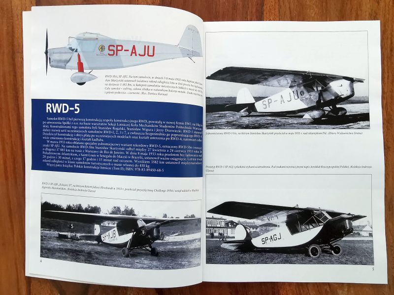 Przegląd rozpoczynają samoloty z Doświadczalnych Warsztatów Lotniczych, czyli RWD. Od RWD-5 zaczynając, na RWD-21 kończąc. Nie ma natomiast RWD-17. Zagadnienie malowania takich samolotów jak RWD-8 czy RWD-13 jest materiałem na osobną publikację, i to sporą, więc tej książki nie należy traktować jako wyczerpującą całą tematykę a jedynie przybliżającą do niej.