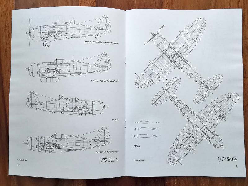Pierwsze sześć stron to plany samolotu wykreślone w podziałkach 1/72 i 1/48. Plany składają się z rzutów bocznych, górnego, dolnego oraz przekrojów. Sylwetki boczne w skali 1/72 uwzględniają także wszystkie podstawowe podwersje czyli D-1, D-5-RE, D-10-RE, D-22, D-15/D-21 oraz D-23. W przypadku tej ostatniej odmiany plany zawierają także rzuty górny i dolny. Plany w skali 1/48 ograniczają się do bocznego rzutu wersji D-1 oraz wszystkich rzutów wersji D-23. Plany pomimo tego, że nie przytłaczają w żaden sposób objętością spokojnie pozwalają na odtworzenie w modelu faktury powierzchni zewnętrznych w tym linii nitów, co dla wielu modelarzy ma niebagatelne znaczenie.