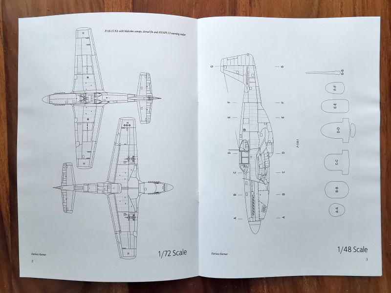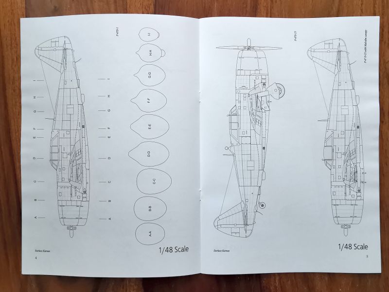 Podobnie jak w przypadku pierwszego zeszytu układ publikacji jest taki sam i tego należy spodziewać się po kolejnych broszurach z serii. Pierwsze siedem stron to plany w podziałkach 1/72 i 1/48. Składają się z podstawowych rzutów i przekrojów kadłuba. Plany w skali 1/72 to rzuty boczne wersji P-51B-5, P-51B-15, Mustang III w dwóch wersjach. P-51B-15 z kabiną typu Malcolm Hood ukazany został także w rzutach z góry i z dołu. Plany w skali 1/48 obejmują ten sam zestaw podwersji samolotu, wzbogacone są także o rzut z przodu i z tyłu. Sposób ich wykreślenia jest identyczny jak w przypadku P-47.