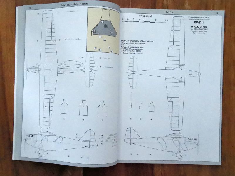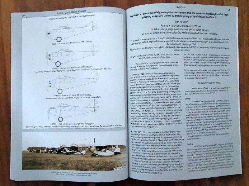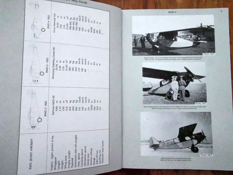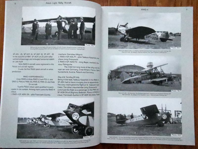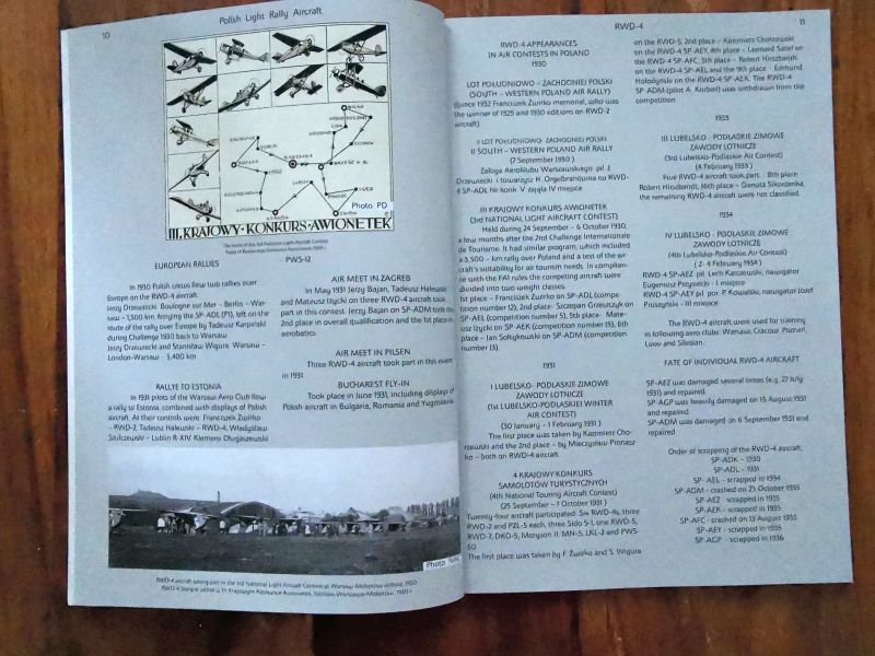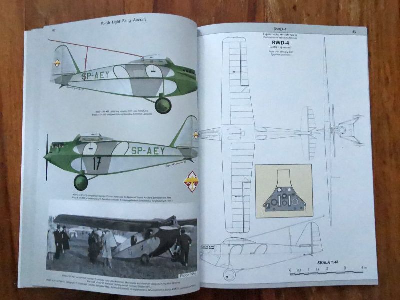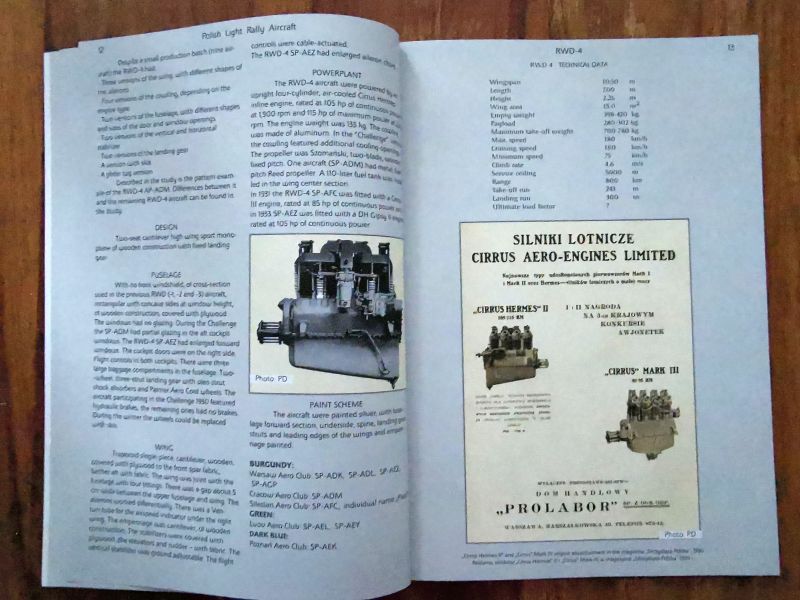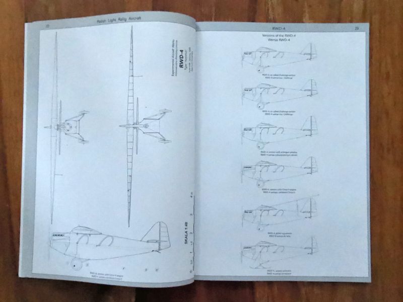 Wracając jednak do RWD-4. Jest to monografia anglojęzyczna. Warstwa tekstowa zawiera wszystko, co należy wiedzieć o tym samolocie. Czyli genezę, budowę i pierwsze loty prototypu, produkcję seryjną i później użytkowanie ze szczególnym naciskiem na udział w zawodach lotniczych, zarówno krajowych, jak i zagranicznych z opisem udziału tych samolotów w Challenege 1930. Wszystko to bogato ilustrowane wysokiej jakości zdjęciami, ale także rysunkami technicznymi, materiałami reklamowymi czy mapami. Autor bardzo duży nacisk położył na wychwyceniu licznych różnic pomiędzy poszczególnymi egzemplarzami. Trzeba przecież pamiętać, że samoloty te wykonywano w warunkach manufaktury w podziemiach budynku Nowej Kreślarni Politechniki Warszawskiej, dopiero ostatnie zbudowane egzemplarze powstały w nowej siedzibie wytwórni na warszawskim Okęciu.