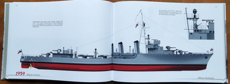 Nie mogło oczywiście zabraknąć w tym miejscu zagadnień zawiązanych z Marynarką Wojenną. Szczegółowo omówiono podstawowe typy okrętów wojennych, czyli niszczyciele typu „Grom”, typu „Wicher”, stawiacz min „Gryf” oraz okręty podwodne typu „Ryś” i typu „Orzeł”. Znajdziemy także informacje o minowcach wz.1933 oraz o kutrze strażniczym „Batory”. Pominięto natomiast kanonierki OORP „Komendant Piłsudski” i „Generał Haller” oraz okręty flotylli śródlądowych. Piękne sylwetki okrętów wojennych pojawiają się w kilku miejscach opracowania, przy omawianiu poszczególnych rodzajów uzbrojenia artyleryjskiego. Warto zwrócić uwagę na fragmenty sylwetek „Groma” czy „Gryfa” gdzie pokazano sposób rozmieszczenia przeciwlotniczych karabinów maszynowych. W podobny sposób pokazano wszystkie elementy uzbrojenia okrętowego.