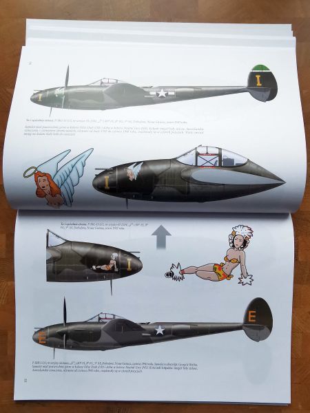 Dysponujemy także całkiem sporą ilością barwnych bocznych sylwetek, ukazujących przykłady malowania. Ponieważ są to wczesne wersje praktycznie we wszystkich przypadkach jest schemat dwukolorowy – Olive Drab i Neutral Grey. Trzeba tu powiedzieć jasno, że jest to zaledwie niewielki wycinek, taka próbka całości zagadnienia malowania Lightingów. Pozwala jednak zorientować się w temacie.