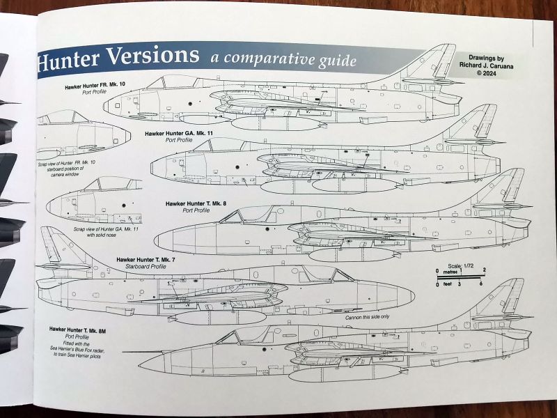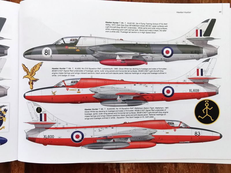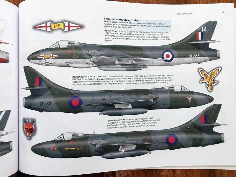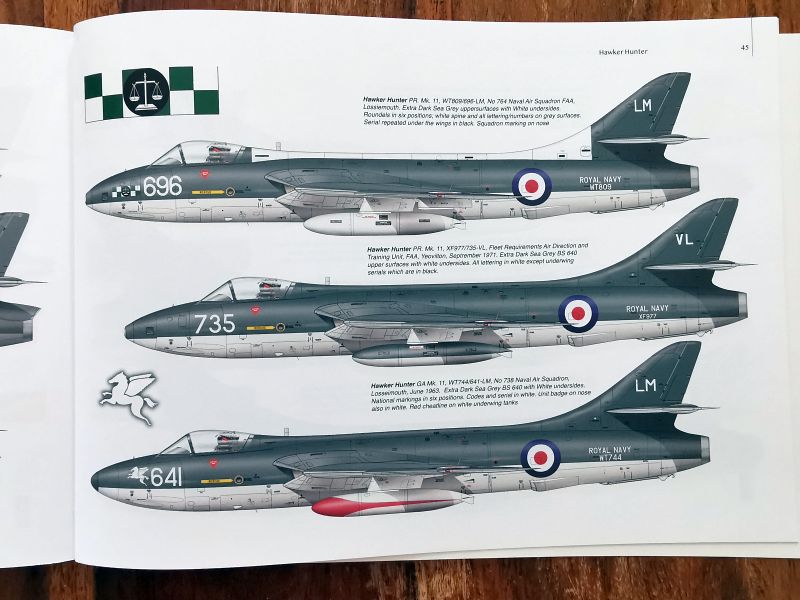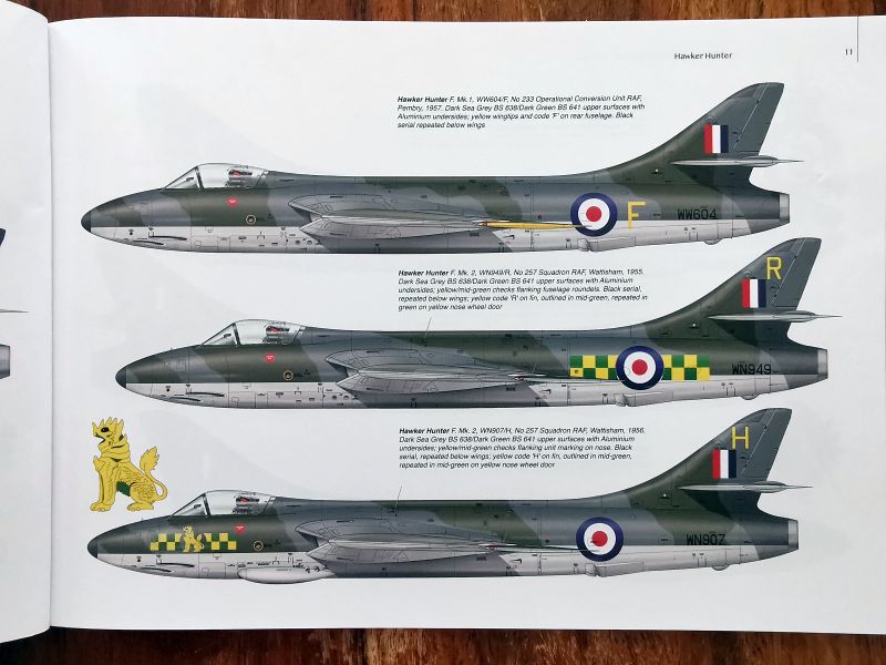 Potem autor przedstawia to, w czym jest najlepszy. Jest to kilkadziesiąt sylwetek barwnych ukazujących najbardziej efektowne przykłady malowań samolotów Hawker Hunter w ciągu pięćdziesięciu lat ich służby w RAF i Royal Navy. Autor zaczyna jednak od poprzednika Huntera, czyli myśliwca Hawker Sea Hawk, pokazuje także malowanie prototypu. Następnie pokazuje poszczególne przykłady malowań, każde należycie opisane.