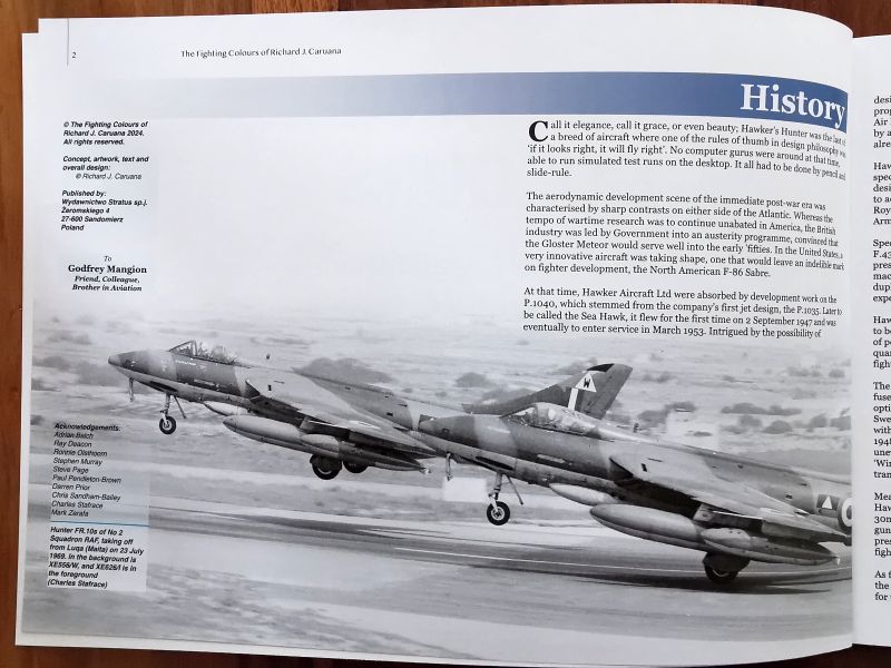 Twórczość Richarda J. Caruny miałem już okazję przedstawić, przy okazji ukazania się opracowanej przez niego publikacji w ramach cyklu „Flying Colours of Richard J. Caruana”. Teraz nadarzyła się okazja, aby przybliżyć drugą z serii wydawniczych przygotowywanych przez tego autora. Właśnie ukazała się piata już publikacja z cyklu „Fighting Colours of Richard J. Caruana” a poświęcona jest jednemu z najbardziej znanych brytyjskich samolotów okresu powojennego, myśliwcowi Hawker Hunter.