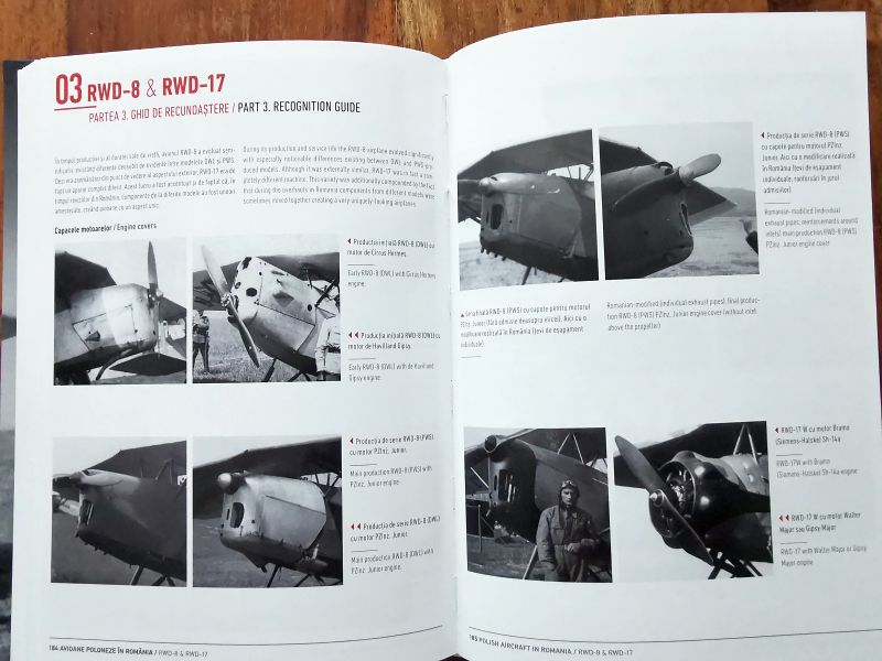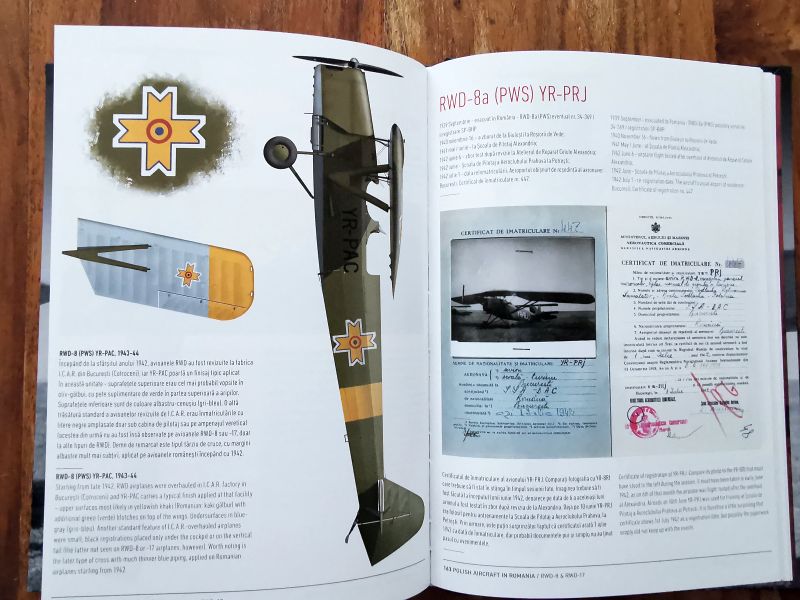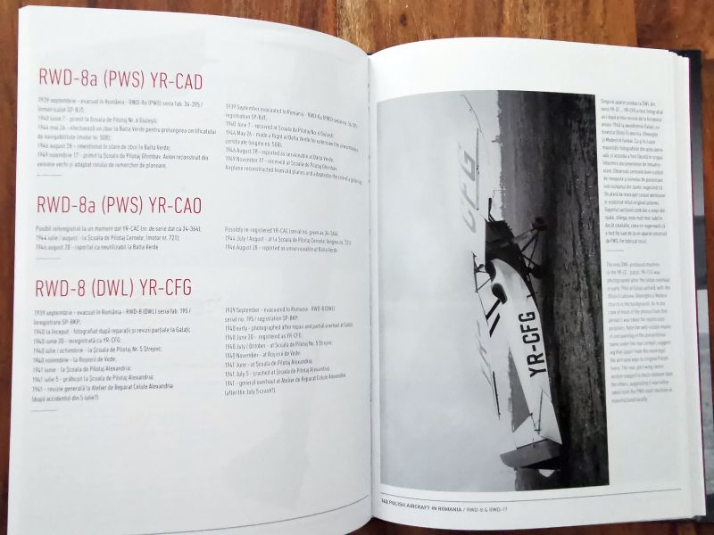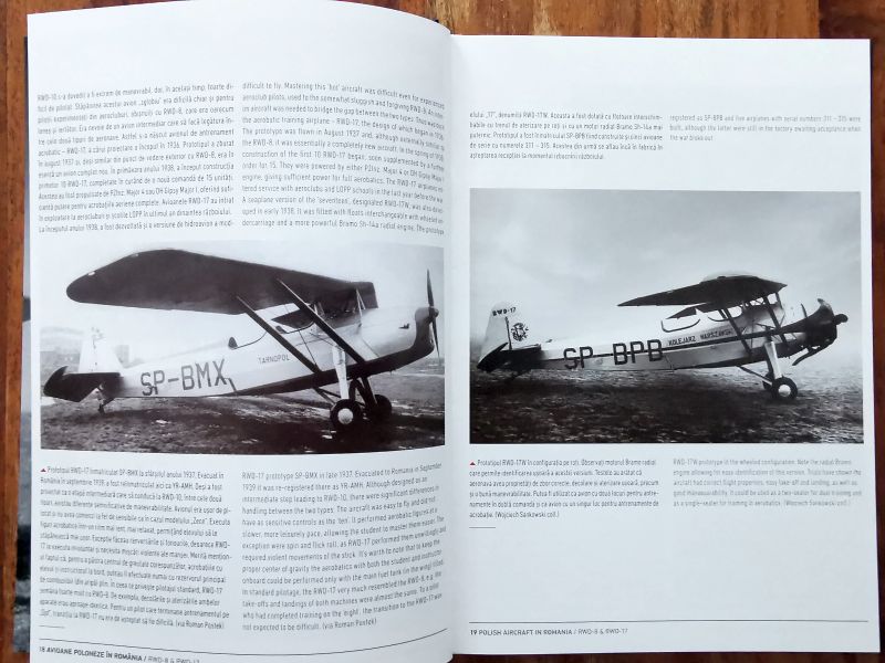Dowiadujemy się także, dlaczego lotnictwo rumuńskie zainteresowało się akurat samolotami RWD. Opisano proces zakupu i wdrożenia tych samolotów do służby w lotnictwie rumuńskim, a także epizod wojny obronnej 1939 r. kiedy to do Rumunii ewakuowano kolejne samoloty RWD-8 oraz niewielką ilość RWD-17. Każdy z samolotów został indywidualnie opisany, oczywiście na tyle dokładnie, na ile pozwalał na to aktualny stan wiedzy. Czasem jest to skromna notatka, czasem bardziej szczegółowy opis uzupełniony zdjęciem lub kilkoma, a czasem także sylwetką barwną.