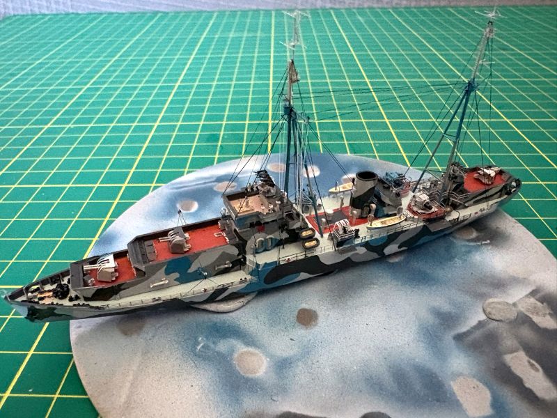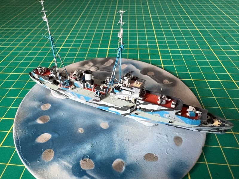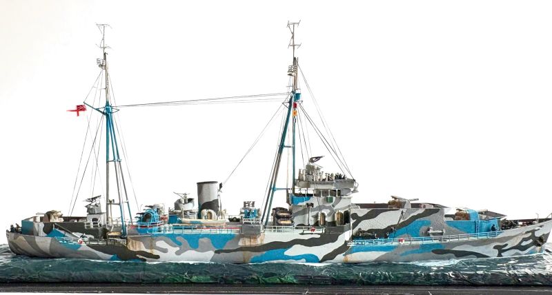 W przypadku tego modelu jedynie skomplikowany kamuflaż mógł nastręczyć trudności, ale w zaręczam, że warto było się pomęczyć. Trzeba tylko zaopatrzyć się w dobrej jakości retuszerskie pędzelki i farby akrylowe. Ja nadal jestem pod dużym wrażeniem farbek ukraińskiego ICM-u, którymi malowałem pokłady. Szkoda, że firma nie wydała kolejnego kompletu tych farbek, ale może zrobi to w przyszłości. Mając już gotowy model postanowiłem go nieco ożywić.