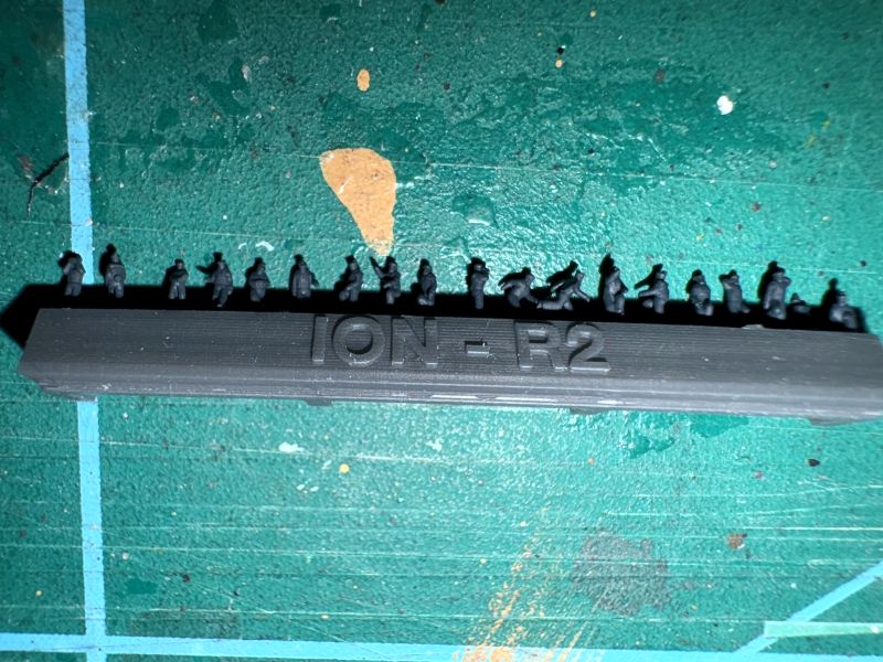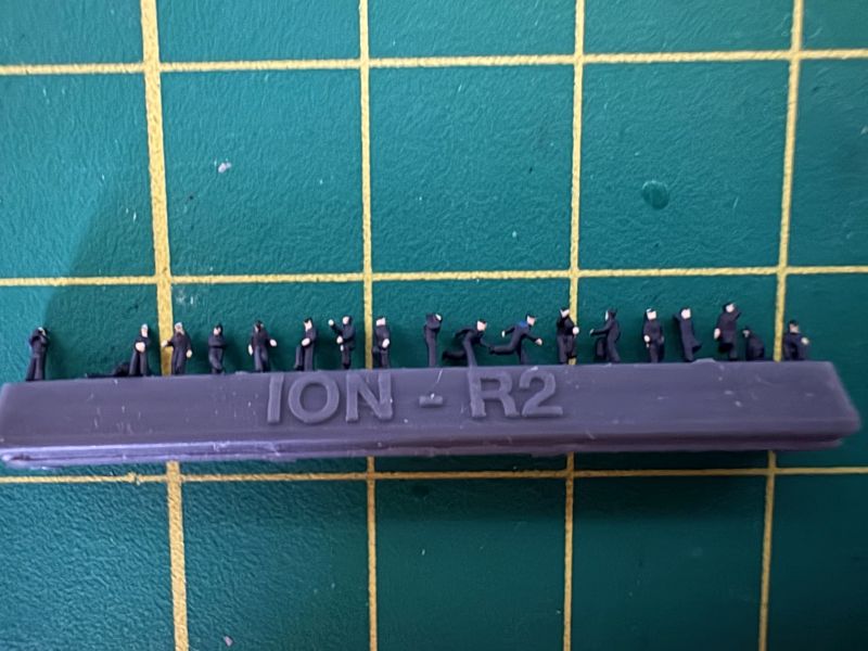W tym celu postanowiłem wykorzystać i przetestować zarazem, wykonane w formie wydruków 3D figurki brytyjskich marynarzy firmy ION Models. Figurki te opisywałam jakiś czas temu. Zastanawiałem się jak do tego zabrać. Pierwotnie myślałem o pomalowaniu figurek przed wycięciem z wydruku. Pomysł ten jednak zarzuciłem, bo do malowania figurki powinny być dokładnie oczyszczone z resztek suportów. Ostatecznie przy pomocy nie używanej żyletki i nowego ostrza w precyzyjnym nożyku OLFA zacząłem odcinać je od podstawki. Niemal od razu opracowałem dość skuteczną metodę, dzięki której żaden z matrosów „w zamieszaniu nie stracił głowy”. Po prostu odcinanie należy zacząć od suportu przy głowie. Do tego właśnie potrzebna jest żyletka. Możemy użyć naprawdę niewielkiej siły i oddzielić głowę naszego marynarza od suportu w bardzo precyzyjny sposób. Nie oddzielimy przy okazji głowy od tułowia. Resztę odcinamy w podobny sposób. Wycięte i oczyszczone figurki odrobiną kleju CA ponownie przykleiłem do podstawy, ale tym razem już za nogi. Mogłem przestąpić do malowania. Malowałem farbkami akrylowymi za pomocą retuszerskich pędzelków i zaostrzonych wykałaczek. Najpierw kolor bazowy, w tym wypadku czarno – granatowy. Po dokładnym wyschnięciu, czyli po około dwunastu godzinach. Potem pomalowałem detale, nie czarujmy się, proces ten ograniczał się do naniesienia wykałaczką kropki cielistej farby w miejsce twarzy i dłoni, czy białej na pokrowiec na czapce lub czarnej na butach.