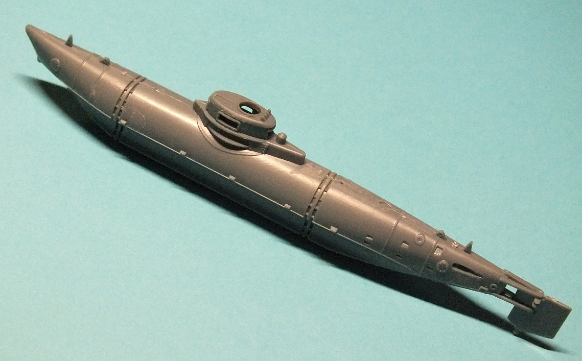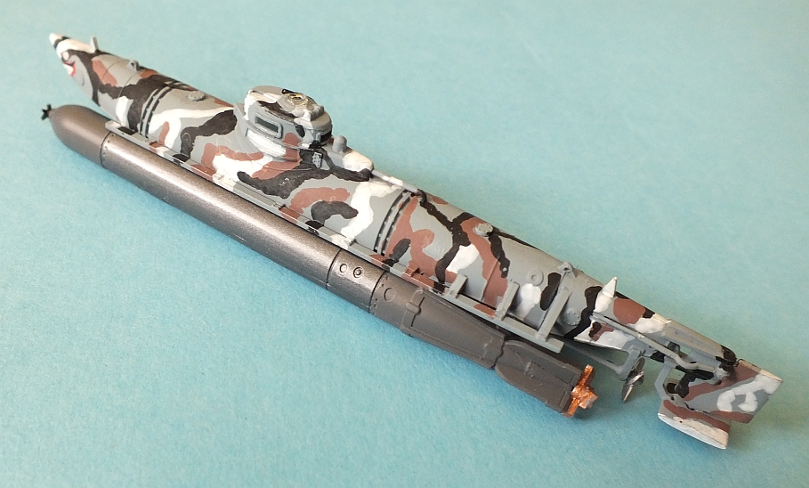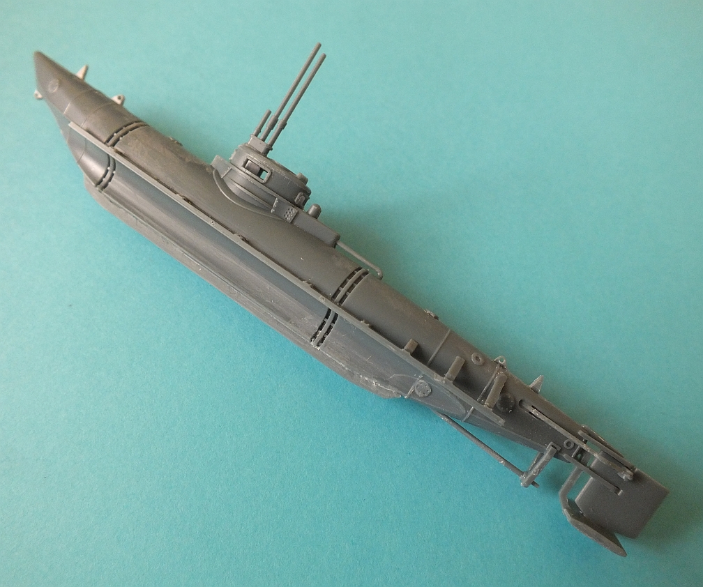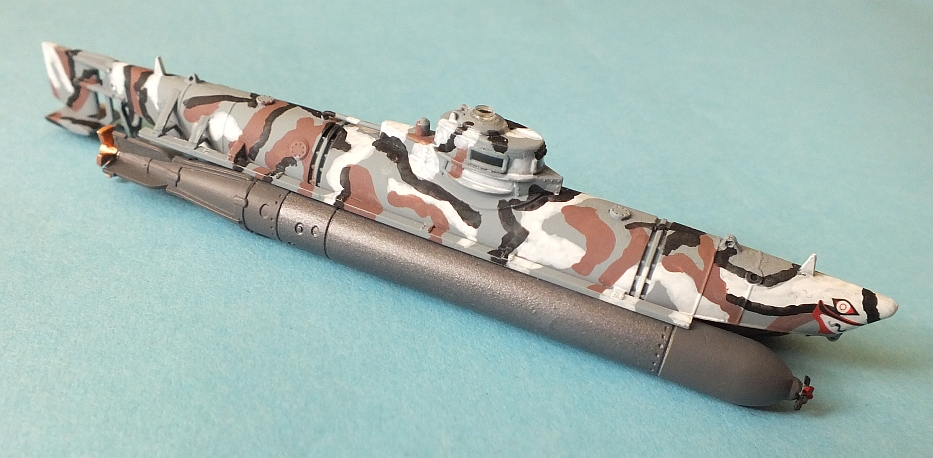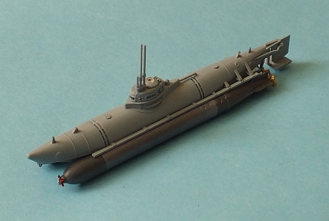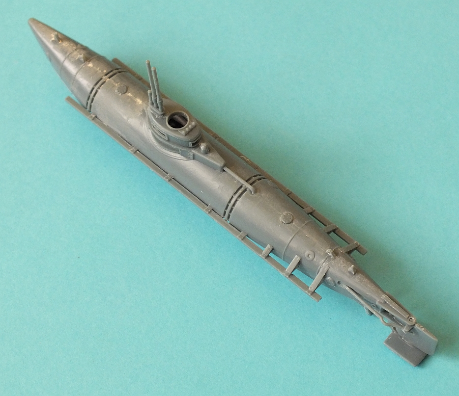Rozwiązaniem problemu byłby zakup dodatkowego pływadła i zmontowanie go już bez peryskopów. Co też się stało. Oczywiście w innym malowaniu, bo nigdy nie buduję takiego samego modelu, przynajmniej jak dotąd, w erze modeli plastikowych, mnie się to nie zdarzyło (w czasach przedpotopowych, to i owszem – robiło się po dziesięć jednakowych).