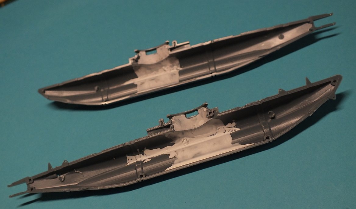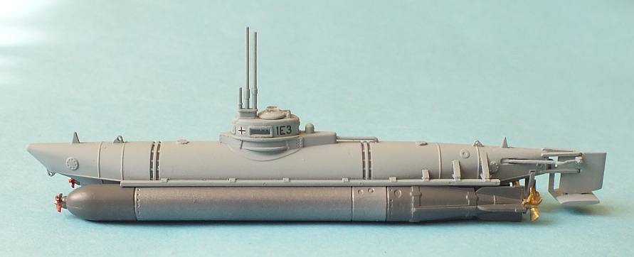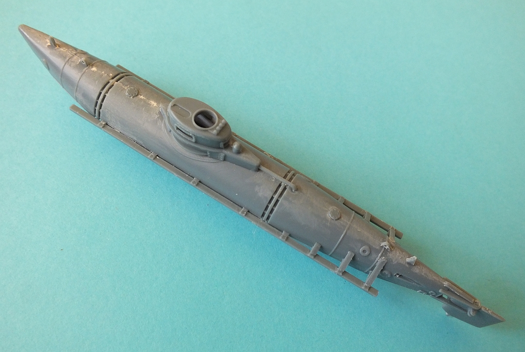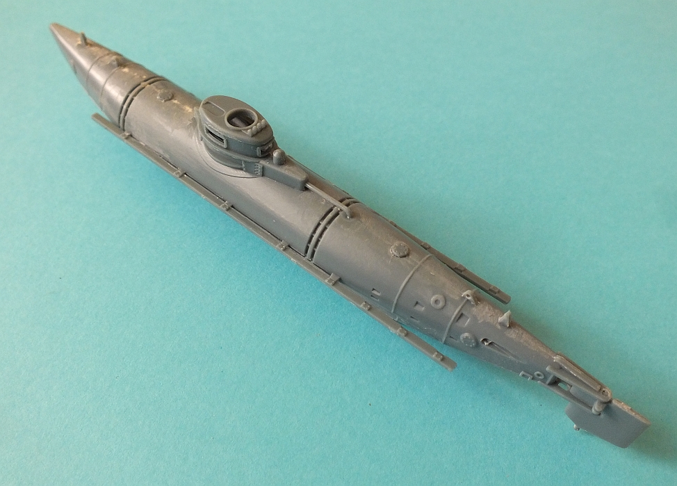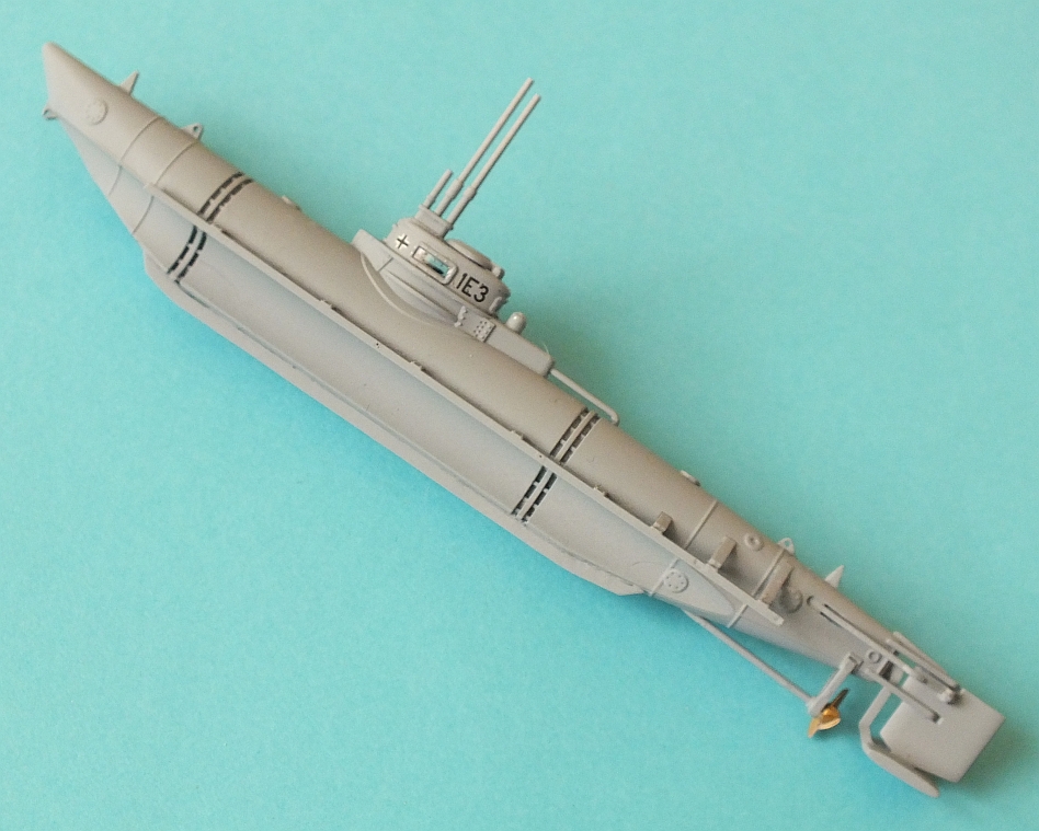 Rozwiązaniem problemu byłby zakup dodatkowego pływadła i zmontowanie go już bez peryskopów. Co też się stało. Oczywiście w innym malowaniu, bo nigdy nie buduję takiego samego modelu, przynajmniej jak dotąd, w erze modeli plastikowych, mnie się to nie zdarzyło (w czasach przedpotopowych, to i owszem – robiło się po dziesięć jednakowych).