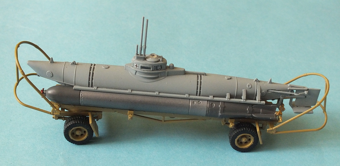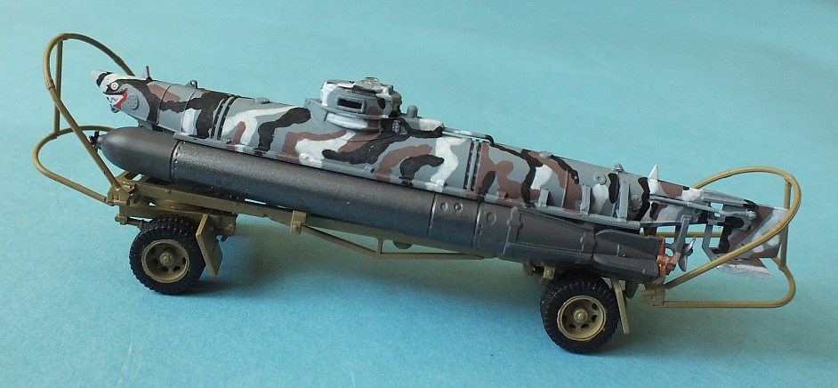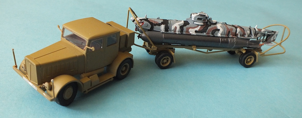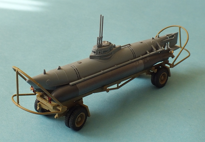 Szkopuł w tym, że prawdopodobnie widok ten jest nieprawidłowy. Otóż na żadnym ze zdjęć z epoki, które udało mi się znaleźć w czeluściach „www”, a na których uwidoczniono Bibery na przeznaczonych do ich transportu przyczepach, nie ma takiego Bobra, który miałby zamontowaną sekcję peryskopową. A mój ma…