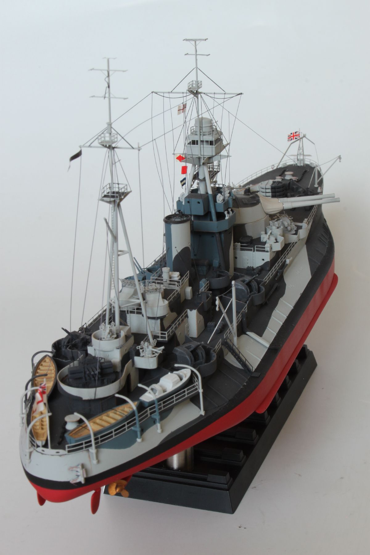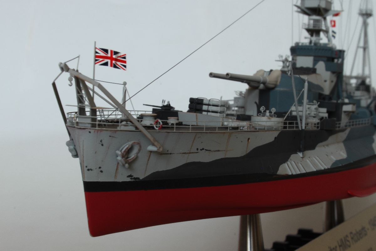 Budowa: Model skleja się bezproblemowo, jedyna trudność to prawidłowe sklejenie podstawy stanowiska obserwacyjnego masztu głównego /skleja się z pojedynczych elementów fototrawionych/. Swój model uzupełniłem o metalowe lufy firmy Master Model, olinowanie z żyłki wędkarskiej. Replika przedstawia okręt wg. stanu z 1945r. Model został pomalowany emaliami Humbrola.Podsumowując za niewielką cenę /ok.200 zł/ otrzymujemy model, który wykonany nawet prosto z pudełka, może sprawić satysfakcję oryginalną sylwetką.