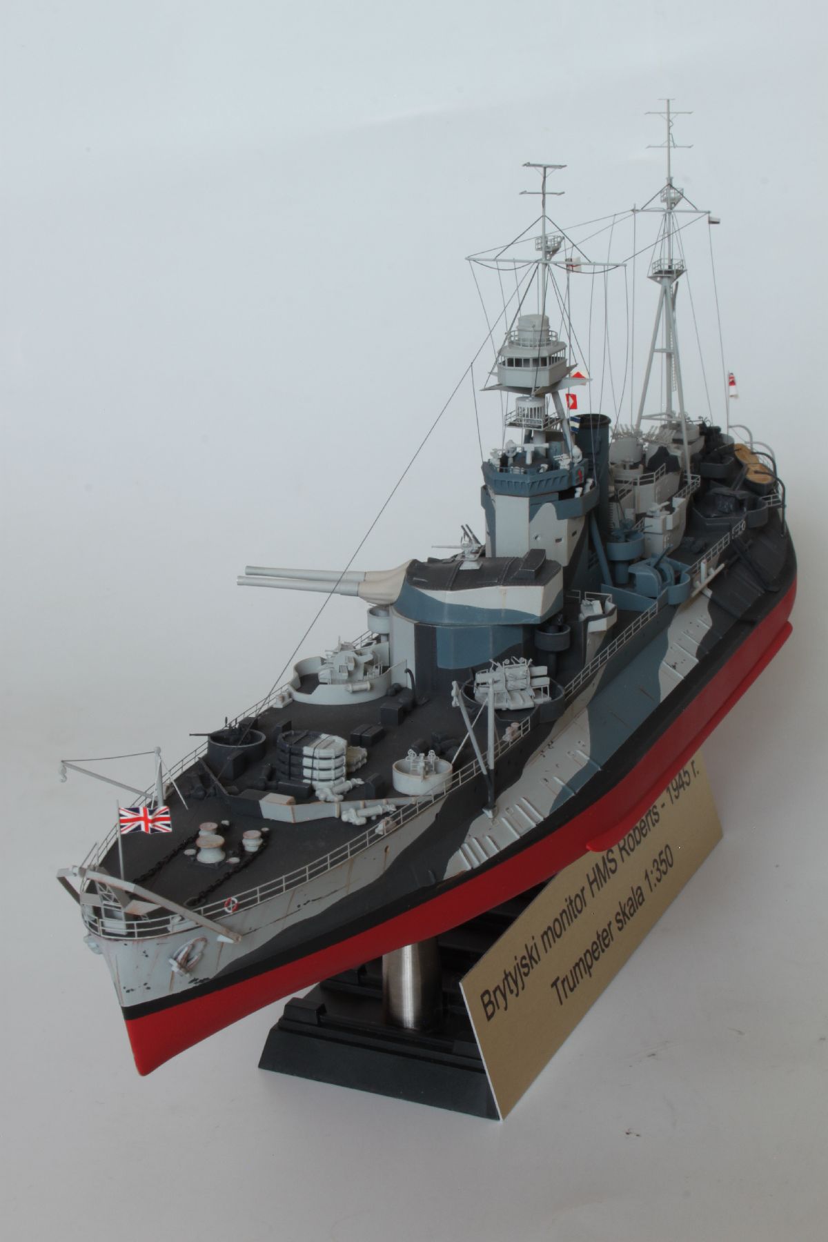 Ocena zestawu : zestaw składa się z 540 części plastikowych, 2 blaszek z elementami fototrawionymi, łańcucha kotwic.Blaszki zawierają komplet niezbędnych elementów do wykonania kompletnej repliki okrętu, jedyny minus blaszek to ich grubość, są bardzo delikatne, podatne na uszkodzenia /szczególnie radary/. Przyzwoicie odwzorowano charakterystyczny kształt kadłuba monitora.