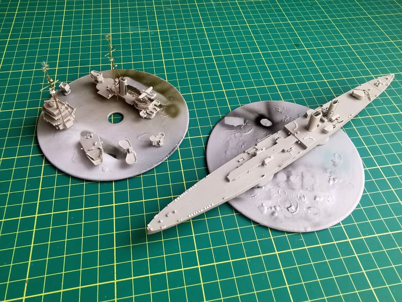 Budowa modelu nie różniła się niczym szczególnym od innych modeli budowanych dla AJM Models. Zacząłem od przygotowania sobie kilku większych modułów modelu, czyli kadłuba z częścią wyposażenia, pomostu bojowego, kilku nadbudówek osobno, też z częścią wyposażenia. Uzbrojenie, poza dziobową wieżą z działami 150 mm, osprzęt ratunkowy i większość wyposażenia pokładowego przygotowałem sobie osobno.
