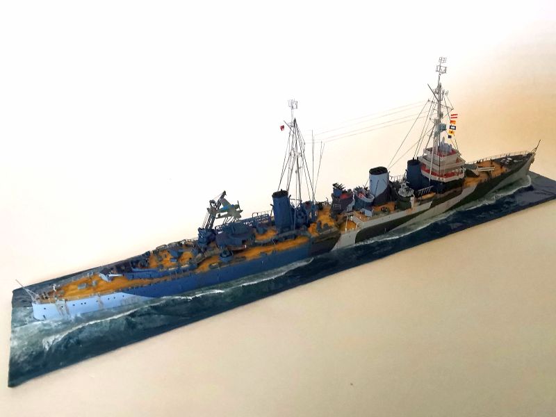 Model był skończony. Przekazałem co miałem do przekazania producentowi, zaś sam mogłem się cieszyć kolejną piękną miniaturą w mojej kolekcji mikromodeli okrętów. Podobnie jak jego bliźniak HMS „Emerald”, HMS „Enterprise” jest modelem dość trudnym i wymagającym. Piękna rasowa sylwetka idzie tu niestety w parze z dość skomplikowaną architekturą nadbudówek i sporą ilością detali.