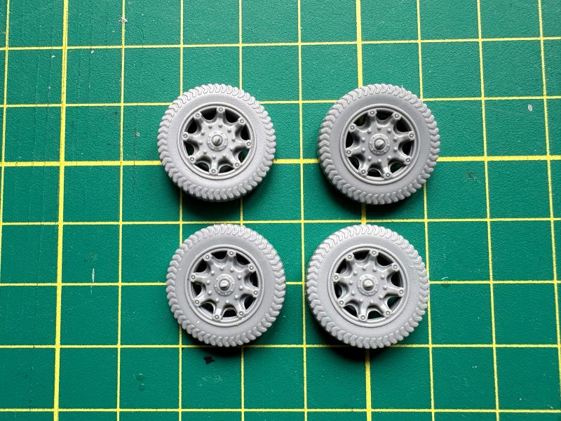 Malowanie także nie było jakąś specjalną filozofią. Wybrałem wariant w kamuflażu, jako bardziej efektowy. Poza tym uznałem, że dobrze mi zrobi trening malowania kamuflażu z wolnej ręki. Może najdzie mnie kiedyś ochota na jakiegoś Focke – Wulfa? Przy pomocy farb akrylowych i pędzelków wymalowałem opony i różnego rodzaju drobiazgi. Potem standardowa procedura sidoluks, kalki i na koniec matowy wash. Ponieważ chciałem pokazać sprzęt nowy, który dopiero co trafił na front, ślady eksploatacji ograniczyłem jedynie do zapuszczenia w niektórym miejscach wascha.