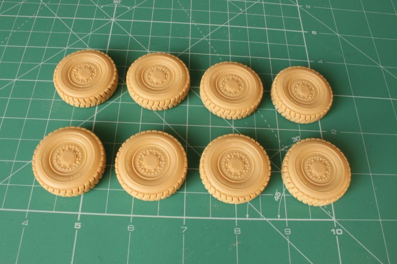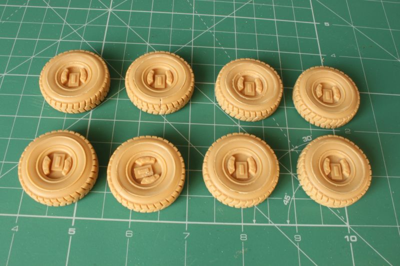 Potem zabrałem się za koła. Wcześniej czytałem, że może być problem z wpasowaniem tarcz z felgami w bieżnik. Rzeczywiście tarcze wymagały zeszlifowania, zwłaszcza te zewnętrzne. Ponadto potwierdziło się to, że po zalaniu miejsc łączenia klejem penetrującym bieżniki mogą pękać. Tak się stało, na szczęście w porę się zorientowałem i uszkodzona miałem tylko jedną oponę. Znalazłem na to sposób. Wystarczy zapuścić naprawdę minimalną ilość w miejsca łączenia i nic się stanie. Potem podkład i farba zrobią resztę.