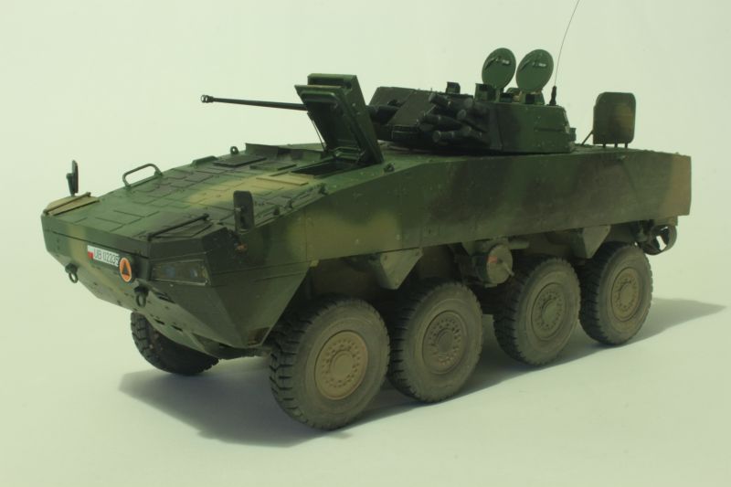 Kiedy dobrych kilka lat temu dowiedziałem się, że firma IBG Models pracuje nad modelem kołowego transportera opancerzonego Rosomak wiedziałem, że ten model prędzej czy później wyląduje na moim warsztacie. Nie kleję pancerki w skali 1/35, ale Rosomak po prostu podobał mi się jako pojazd, a czasem oderwanie się od samolotów i okrętów dobrze robi. Kiedy modele Rośka pojawiły się już na rynku zdecydowałem, że wykonam wersję europejską, używaną przez jednostki wojskowe stacjonujące w kraju. Ponieważ Wojtek pokazał, jakie efekty można uzyskać budując model „Green Devila” jedynie z pudełka, jak postanowiłem pójść krok dalej i nieco zwaloryzować budowaną replikę. Do tego celu wybrałem elementy fototrawione firmy Part oraz lufę z Master Model. Ponadto zdecydowałem się przetestować farby akrylowe i lakiery Hataka.