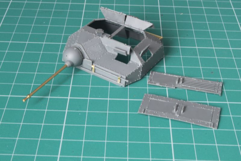 Następnie zabrałem się za wnętrze. Tutaj musiałem nieco wykazać się własną inwencją, gdyż wyposażenie odnosi się do wersji pojazdu z nkm-em a nie z działkiem. Nie roztrząsając co producent miał na myśli (od tego mamy lepszych specjalistów), wykonałem skrzynki amunicyjne, różnego rodzaju pokrywy, przewody czy obejmy. Dokumentacji na szczęście nie brakuje, więc miałem z czego korzystać. Zrobiłem także odpowiednią ilość imitacji magazynków do działka 20mm.