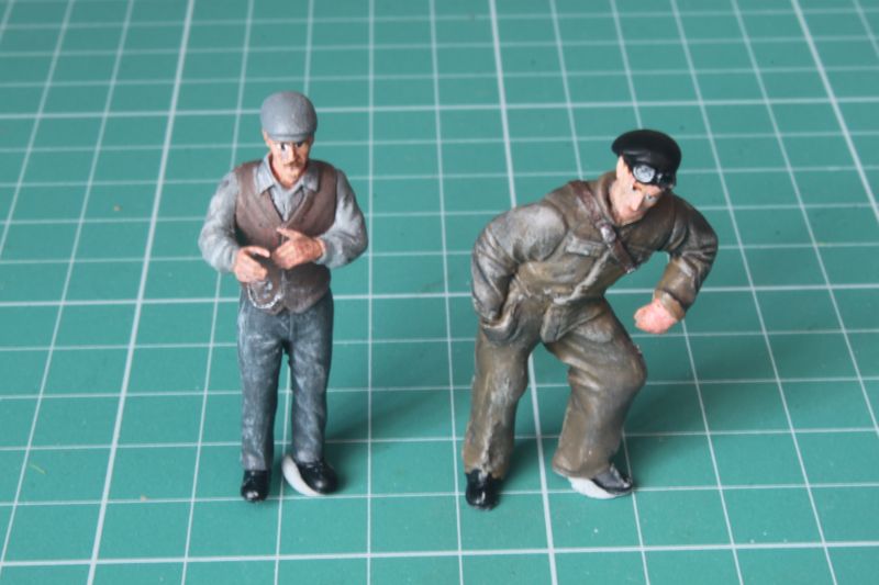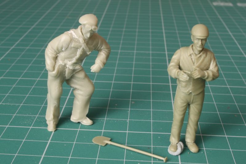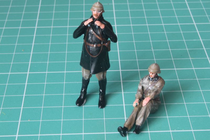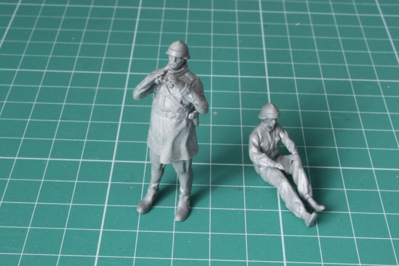 Równolegle do modelu TKS-a powstawały figurki. Dysponowałem załogą tankietki z zestawu oraz dwoma żywicznymi  figurkami firmy Mirage Hobby – podoficerem czołgistą oraz starszym panem z łopatą. Zmontowanie ich nie nastręczało jakiś większych problemów, inna sprawa to malowanie. Nie jestem modelarzem figurkowcem, więc pomalowałem jak umiałem, podglądając w necie i prasie modelarskiej, jak to robią inni. Wyszło, jak wyszło. Trudno.