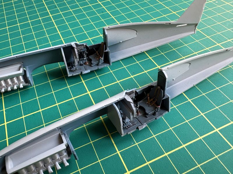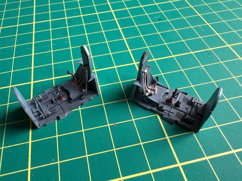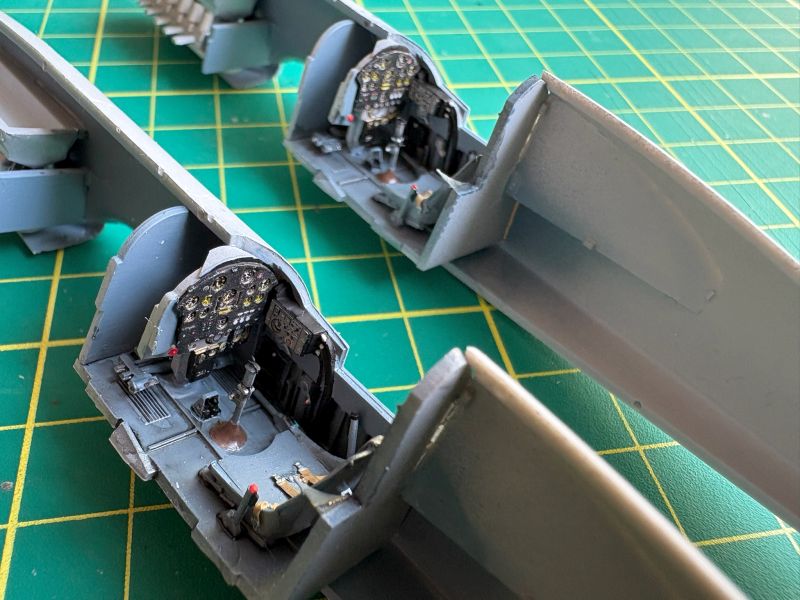 Budowę obu miniatur zacząłem w sposób tradycyjny, czyli od kokpitów. Wszystko, co jest widoczne na powyższych zdjęciach skleiło się w sposób bezproblemowy, co niestety uśpiło moją czujność i zemściło się później w sposób okrutny i wredny zarazem. Zestawy Yahu zostały wykorzystane w całości, co naprawdę zrobiło robotę. Można było zatem wklejać kokpity w kadłuby i mieć w perspektywie składanie kadłubów w całość.