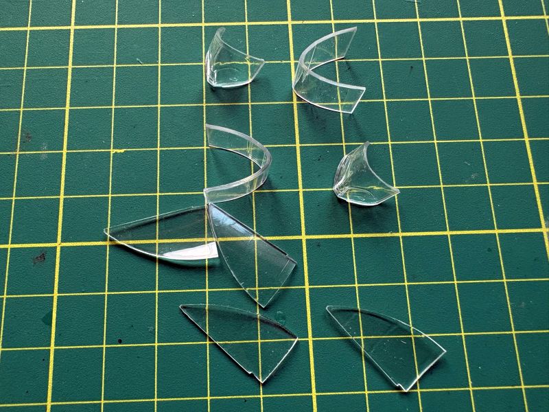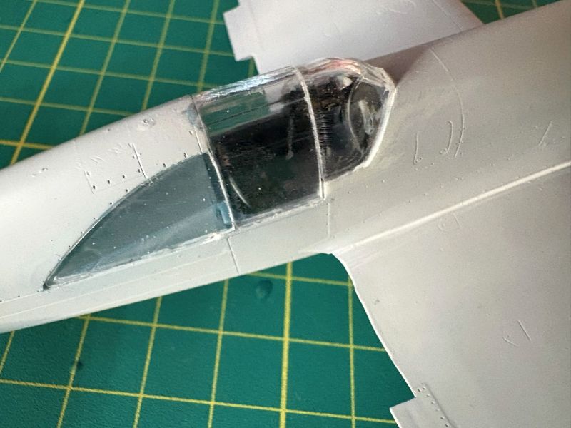 Oszklenie dało mi w kość z kilku powodów. Także nie było dopasowane i każdy z elementów poza dokładną obróbką wymagał także indywidualnego spasowania z resztą modelu. Ponieważ nie bardzo miałem pojęcie, jak się osłona kabiny zamykała i otwierała, postanowiłem wykonać ją w pozycji zamkniętej. W mądrych książkach nie znalazłem przydatnych informacji na ten temat. Oczywiście za szerokie kadłuby gwarantowały niezapomniane przeżycia przy montażu. Zacząłem od półokrągłych dużych okien w tylnej części kadłubów. Jakoś weszły na swoje miejsce, a klej pe terujący solidnie przymocował je do kadłubów. Z wiatrochronami już tak łatwo nie było. Najpierw trzeba było przykleić je z jednej strony, a po wyschnięciu kleju, delikatnie naciągnąć i złapać z drugiej strony. Trzeba było też uważać na zamocowane od środka ramy celowników. Przezornie przykleiłem je tylko z jednej strony. Na koniec przykleiłem limuzyny, postępowałem podobnie, jak z wiatrochronami. Później nastąpiło coś, czego bym w najśmielszych snach nie przewidział.