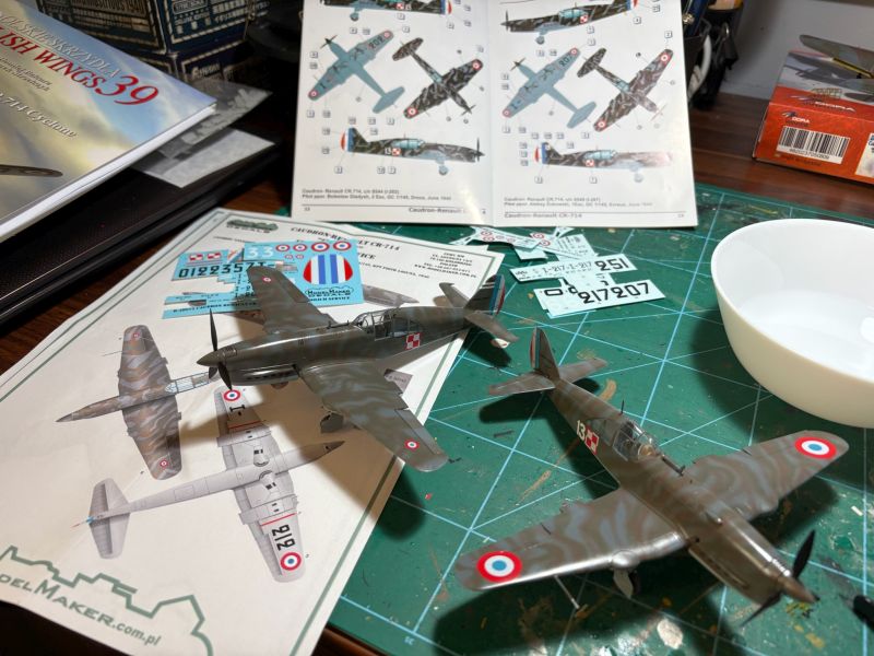 Te dwa modele widniejące na zdjęciach powinny powstać znacznie wcześniej. To jeden z ostatnich naszych wspólnych projektów, nieodżałowanego Bartka Belcarza i mój. Miały powstać dwa modele samolotów myśliwskich Caudron Renault C.714 w skali 1/48, niestety nie zdążyłem. Bartka już nie ma wśród nas, pewnie kursuje gdzieś pomiędzy Niebieską Eskadrą a Niebieską Modelarnią weryfikując u źródeł ustalenia poczynione za życia. Ja zostałem z dwoma zestawami Dora Wings. Potraktowałem jednak sprawę honorowo i postanowiłem skleić oba modele. Tak jak ustaliliśmy. Zatem do dzieła.