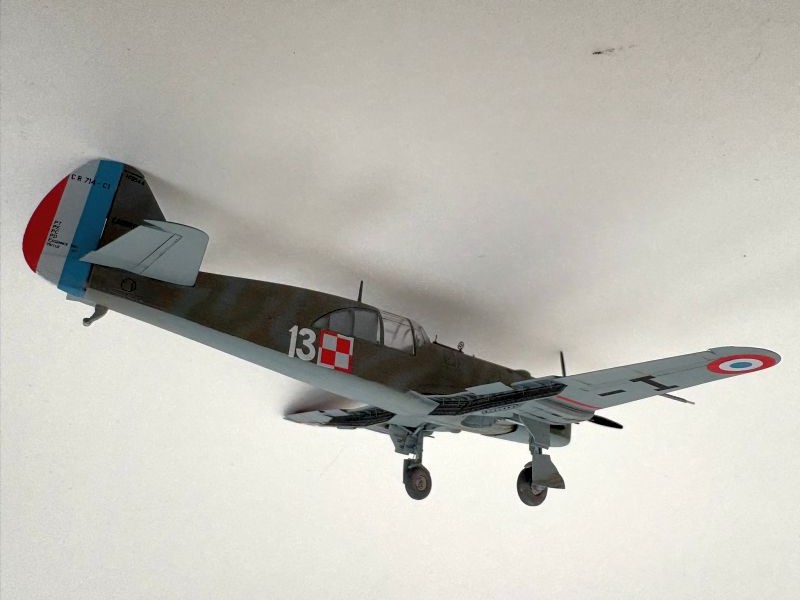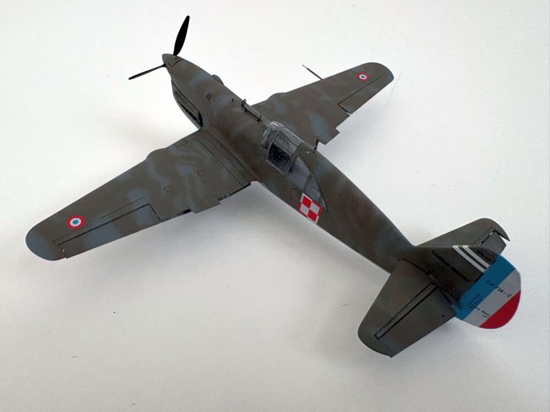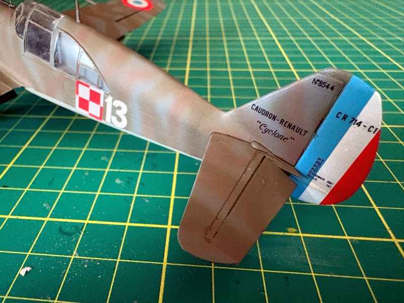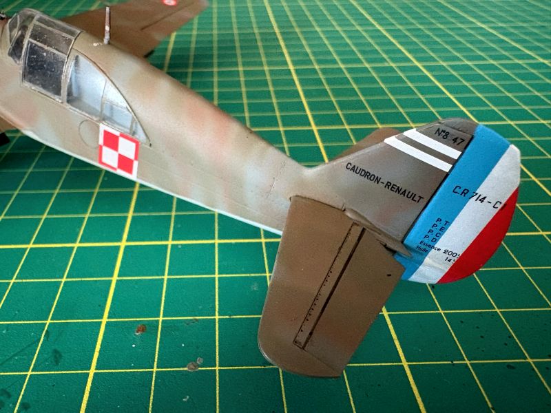 Malowania obawiałem się równie mocno jak klejenia. Głównie z powodu własnych umiejętności. Kamuflaże francuskie do łatwych nie należą, a te na Caudroanch CR.714 już na pewno. Z naniesieniem podstawowych dwóch szarych kolorów nie było problemu. Wcześniej delikatny preschding dosłownie w kilku miejscach, granica kolorów odcięta taśmą maskującą. Postanowiłem zaryzykować i nakładać kolory kaki (takiej nazwy używają Francuzi) i brązowy z wolnej ręki, bez żadnych szablonów, czy blue taca. Wszystkie możliwe pokrętła w aerografie skręcone prawie do minimum. Pod ręką miałem pędzelek z rozpuszczalnikiem nitro, którym co jakiś czas przemywałem dyszę. Szło całkiem nieźle, aż się zdziwiłem. Po zakończeniu malowania porównałem swoje dzieło z sylwetkami barwnymi w Polish Wings by stwierdzić, że moje Caudrony są podobne do nikogo. Ponieważ ładnie wyglądały uznałem, że na pierwszy raz jest nieźle i takie zostaną. Może kiedyś wrócę do tematu i odtworzę każdą plamę. Po zdjęciu masek z kabiny czekały mnie dwie niespodzianki. Dobra była taka, że maski zrobiły swoje zaś tworzywo użyte do produkcji oszklenia nie reaguje z lakierami Bilmodelu. Wszystko, co nie wyszło jak trzeba, można spokojnie skorygować przy pomocy zaostrzonej wykałaczki i usunąć farbę z miejsc, gdzie nie powinno jej być. Druga była nieco gorsza i też dotyczyła tworzywa. Okazało się, że źle reaguje na naprężenia i w wielu miejscach w obu modelach pojawiły się promieniste mikropęknięcia. Próbowałem zalać je sidoluksem, ale to nie pomogło. Musi ta zostać, w końcu to tylko model, zabawka, nie rzucę się z tego powodu pod pociąg, ani nie nagram płyty disco polo.
