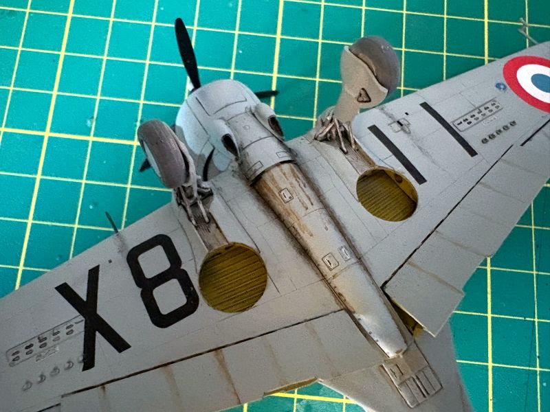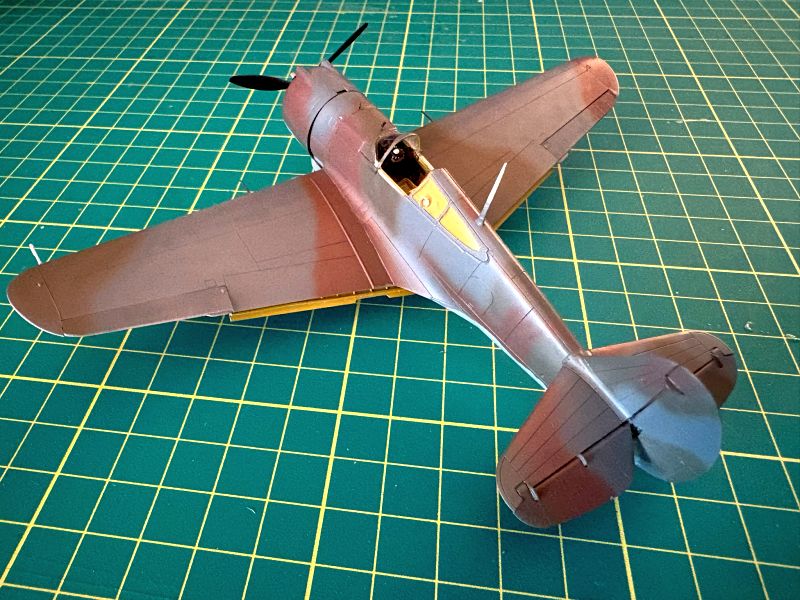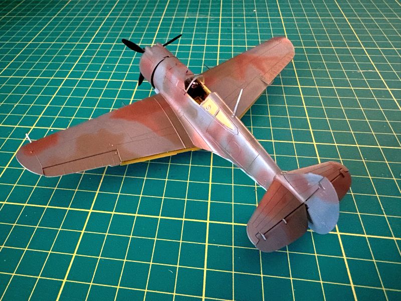 Do malowania użyłem lakierów Bilmodelmakers. Kolorystyka zaproponowana przez tego producenta bardzo mi odpowiada. Kolory i odcienie dobrane są po prostu w punkt. Poszczególne kolory kamuflażu (Brun i Kaki) nanosiłem „z wolnej ręki” przy maksymalnie skręconym ciśnieniu w aerografie. Jedynie styk koloru jasno szaro niebieskiego (Gris Blue Clair) oraz kolorów kamuflażu (Gris Blue Foncé, Kaki, Brun) odciąłem przy pomocy blue taca. W przypadku samolotu Jana Zumbacha przy pomocy nieco rozjaśnionej brązowej (Brun) starałem się odtworzyć efekt zużytej powłoki lakierniczej.