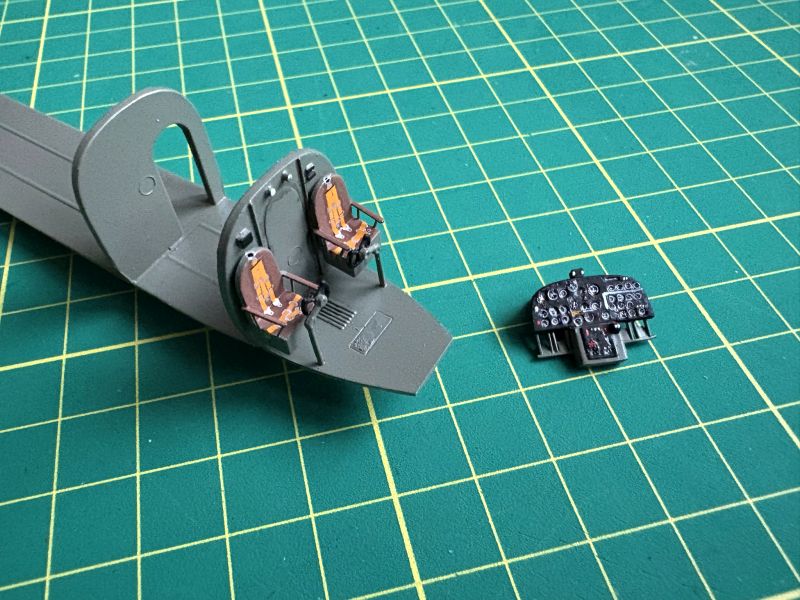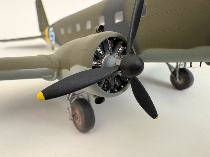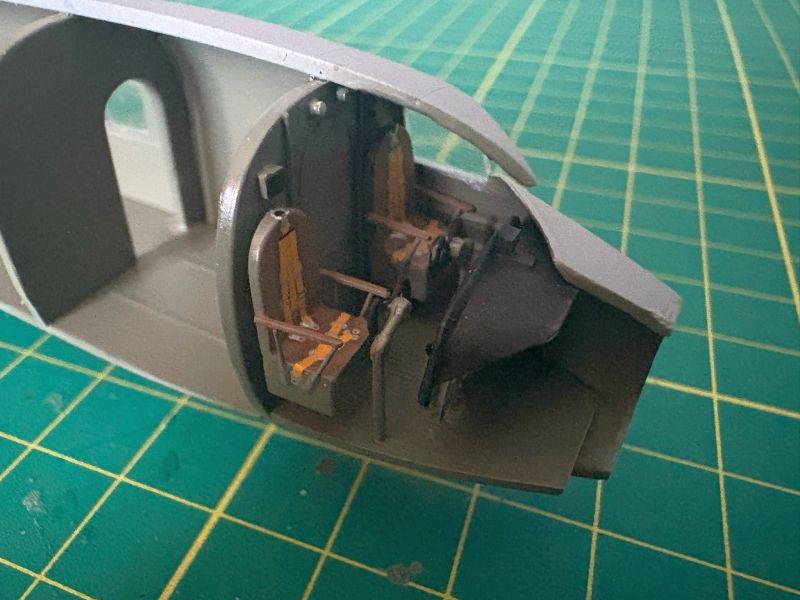 Wnętrze pomalowałem zgodnie z instrukcją, kolorem stosowanym w RAF-ie. Zresztą kolorystyka odrestaurowanego oryginału też budziła spore wątpliwości. Podejrzewam, że w czasie remontu i wymiany silników, jeszcze w czasie wojny, pomalowali czym mieli, zaś na podstawie tego odtworzono kolorystykę samolotu podczas renowacji.