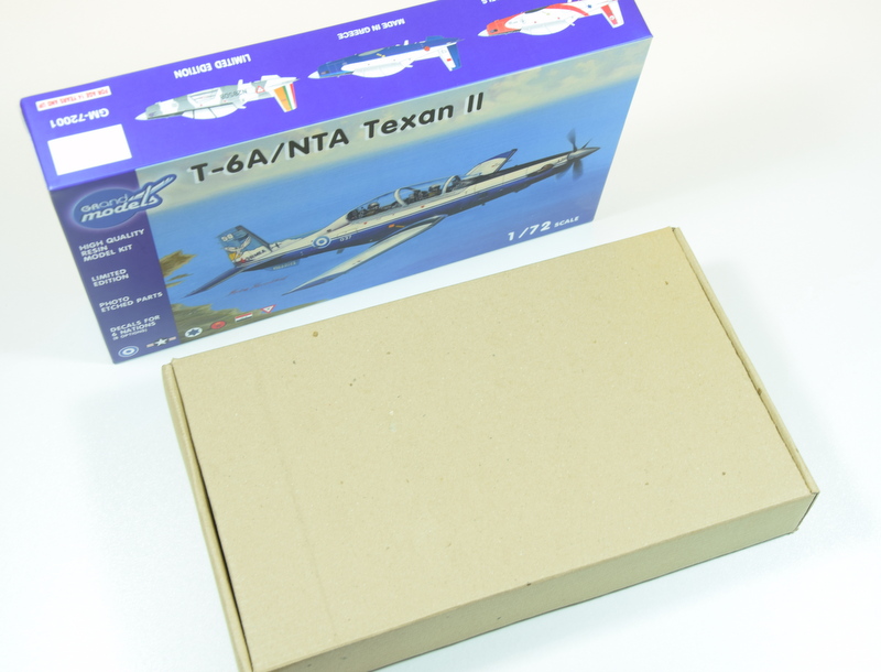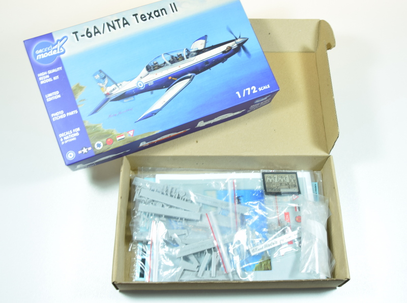 BEECHCRAFT T-6A/NTA TEXAN II to jednomiejscowy, lekki samolot szkolno-treningowy ,jest to zamerykanizowana wersja Szwajcarskiej firmy PILATUS AICRAFT PC-9. Zestaw na samym początku prezentuje się dość okazale, a to dzięki wyśmienicie i efektownie zaprojektowanemu boxartowi. Przedstawia TEXAN-a w okolicznościowym malowaniu Greckich sił powietrznych. Model jest zestawem z serii LIMITED EDITION. Zestaw T6-A/NTA TEXAN II jest pierwszym zestawem na rynku firmy GRAND MODELS pochodzącej z Grecji.