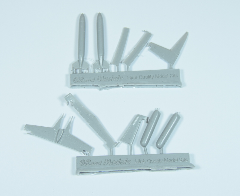 Tak nam się prezentuje zestaw zaraz po wypakowaniu z pudełka. Elementy żywiczne są pogrupowane w 5 woreczkach strunowych, w jednym znajduje się owiewka samolotu. Zawartość woreczków to 43 części żywiczne w kolorze szarym, dobrej jakości żywicy. Poziom szczegółów jest dość wysoki w wewnętrznych jak i zewnętrznych elementach modelu. Jedna blaszka fototrawiona na której znajduje się 26 części głównie elementów kokpitu, znajduje się też kilka zewnętrznych detali. Pokaźnej wielkości arkusz kalkomanii oraz instrukcja montażu i malowania zestawu w formie książeczki w kolorze.