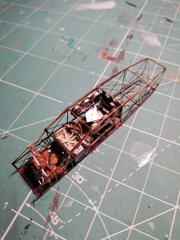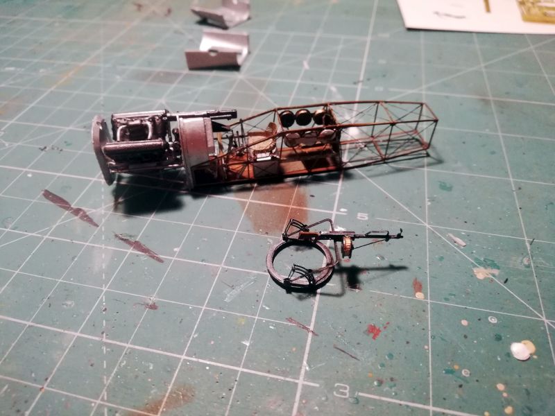 Budowa modelu przebiegała niemal identycznie jak mojego pierwszego Bristola, użyłem tego samego zestawu Rodena, tych samych blach i żywic. Jedyną przeróbką był ów karabin i magazynki do niego. Wykonałem także jako wychylone wszystkie powierzchnie sterowe, podwiesiłem także bomby. Dlatego nie będę szczegółowo opisywał całego procesu budowy, ograniczając się jedynie do zaprezentowania kilku zdjęć z budowy.
