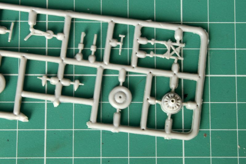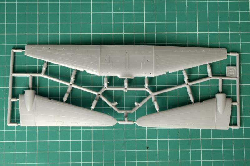 Pierwsza ramka to połówki kadłuba oraz usterzenie pionowe. Na drugiej znajdują się elementy płata. Podział jest tu klasyczny dwie połówki górnych powierzchni płata i jedna dolna, obejmująca także centropłat. Dwie pozostałe ramki to gondole silników, podwozie i trochę drobnych detali.