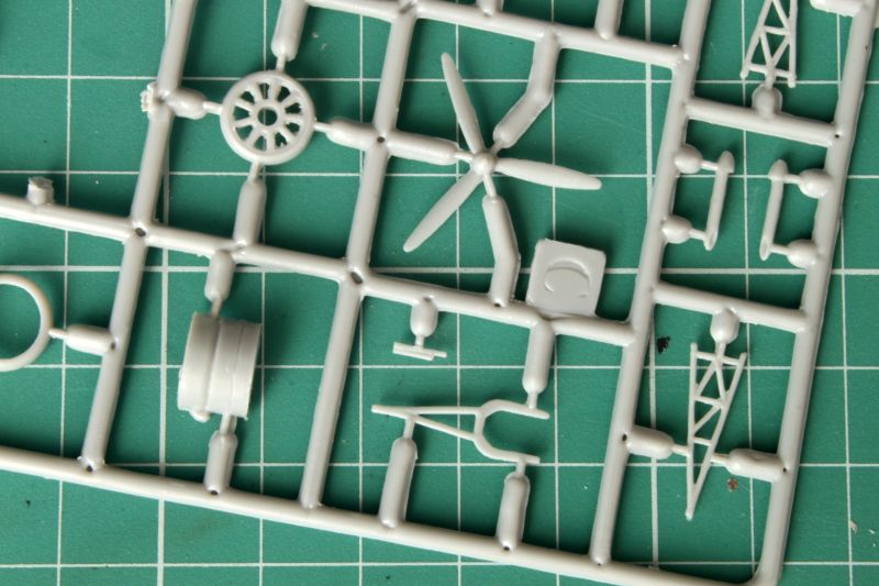 Elementy przezroczyste to jedna niewielka ramka, znajdują się na niej oszklenie kokpitu, szyby w kabinie pasażerskiej oraz wieżyczka strzelecka, której jednak nie wykorzystamy. Jakość jest niezła, szyby dość cienkie i przejrzyste.