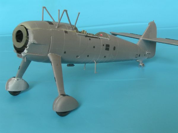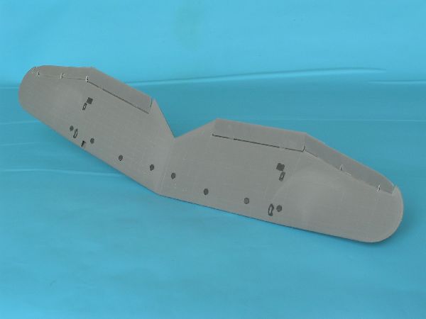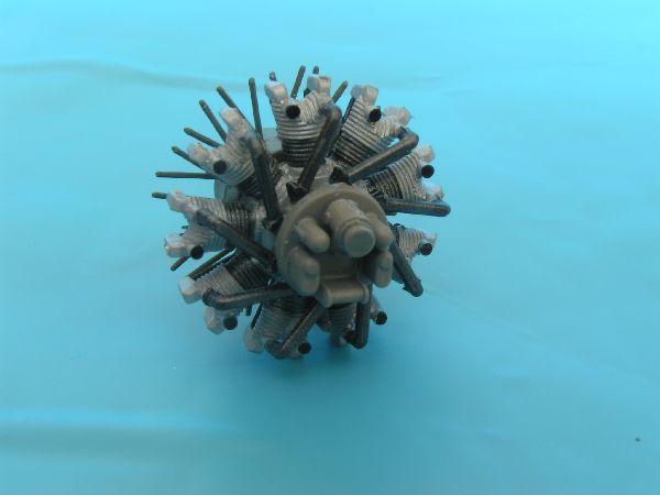 Dopiero mając gotowe moduły okazało się, że poszczególne wręgi są nieco za szerokie i warto je przed pomalowaniem nieco skorygować, tak, aby bez problemu wchodziły w połówki kadłuba. Tam gdzie mogłem zebrałem nadmiar tworzywa nożykiem Olfy i papierem ściernym, ale i tak z klejeniem kadłuba miałem nieco gimnastyki. W miejscach łączenia powstały mi szczeliny, na szczęście niewielkie, ale wymagające użycia szpachlówki. W moim przypadku był, to klej cyjanoakrylowy i w kilku miejscach szpachlówka w płynie. Po wyschnięciu i obrobieniu, miałem już z górki, wytrasowałem na nowo linie, podziału blach i nitów, powklejałem wszystko co mogłem zmontować na tym etapie, zarówno z części zestawowych jak i blaszek. Zostało tylko to co mogło ulec uszkodzeniu w trakcie malowania. W tym miejscu należą się słowa uznania Eduardowi, za to, w jaki sposób blaszki uzupełniają fakturę powierzchni modelu, wszystkie praktycznie panele inspekcyjne i okucia wykonano jako blaszki. Model na tym mocno zyskuje. Natomiast bardzo traci na kruchym tworzywie z jakiego go wykonano. Trzeba bardzo uważać przy wycinaniu i montażu takich elementów jak zastrzały, wsporniki itp. Strasznie się łamią. To samo dotyczy popychaczy w makiecie silnika. Sam silnik, jest to bardzo szczegółowo i wiernie odtworzony element modelu, składa się z kilkunastu detali, mając odpowiednią dokumentację można pokusić się o zdjęcie jednego z paneli osłony, co na pewno podniesie atrakcyjność budowanej repliki.
