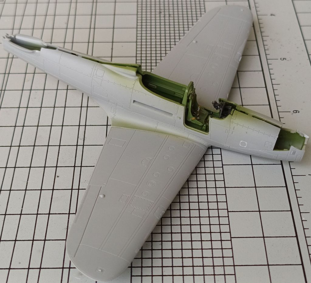 Przyszła kolej na malowanie. Mój wybór to jedyna Airacobra P-39 z szachownicami, osobisty samolot generała Fiodora Połynina z 2. Mieszanego Specjalnego Pułku Lotniczego. Co do tego malowania są pewne rozbieżności, ja postanowiłem zrealizować je w oparciu o schemat zaproponowany przez producenta, czyli w zasadzie standardowe malowanie amerykańskie: góra Olive Drab, dół szaroniebieski. Warto tutaj dodać, że w zestawie znajdowały się papierowe maski, które ułatwiły malowanie oszklenia. Pasowały idealnie i nie podciekały.