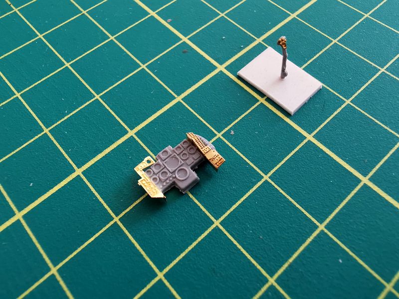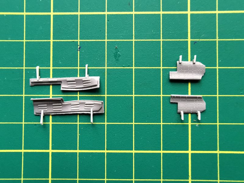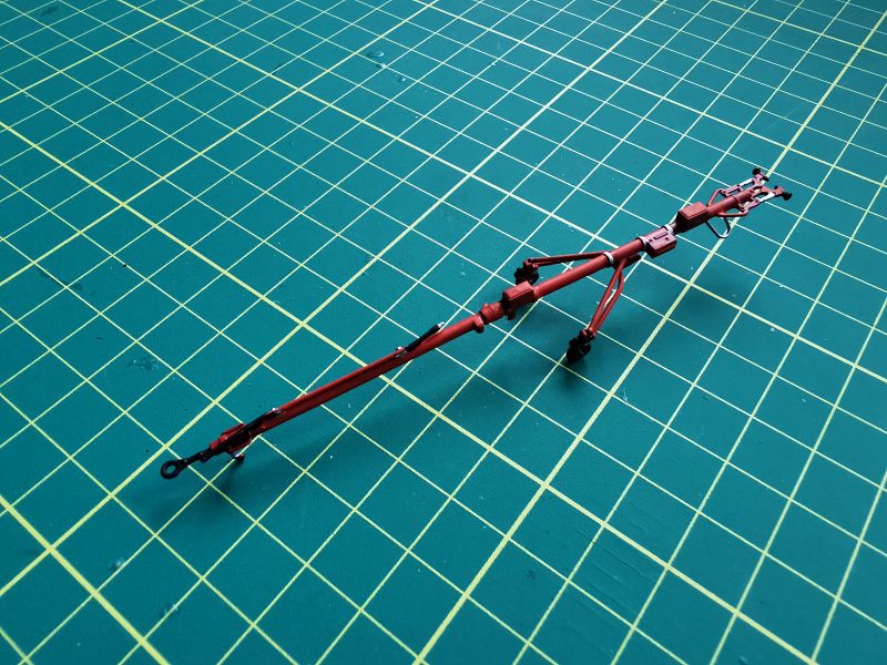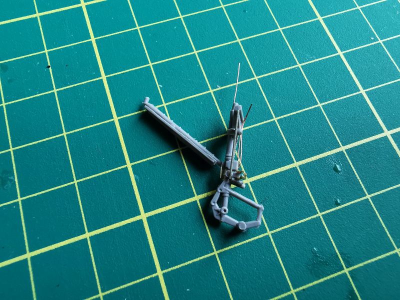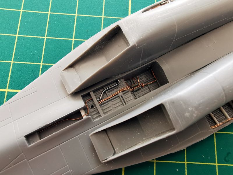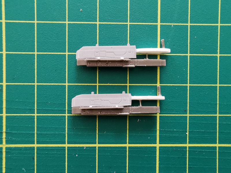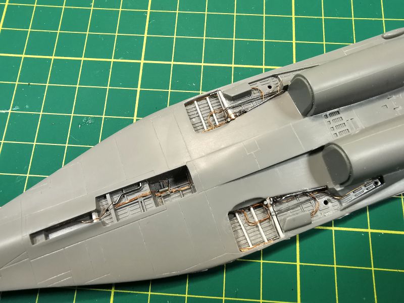 Równolegle powstawały podzespoły podwozia głównego. Golenie dostały imitację przewodów, trochę detali z Parta i trochę dorobionych we własnym zakresie na podstawie zdjęć. Pokrywy luków nowe zawiasy (zrobiłem je celowo nieco dłuższe żeby móc wygodnie operować nimi podczas malowania) oraz reflektory do lądowania wraz z okablowaniem.