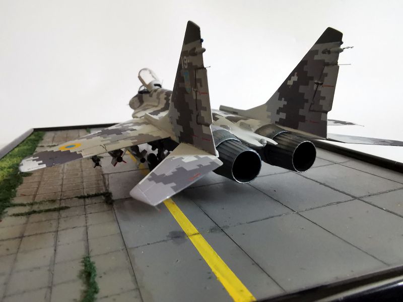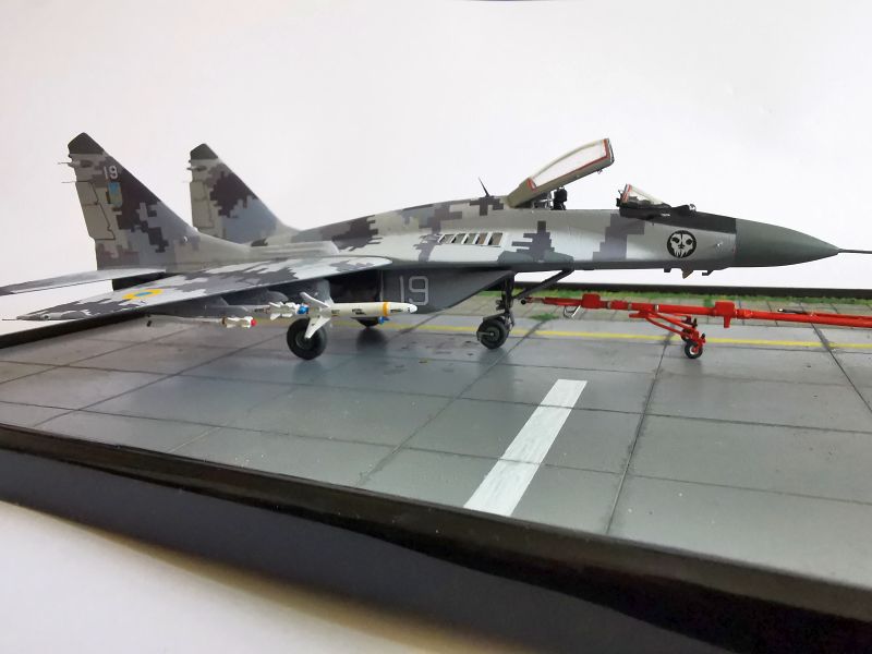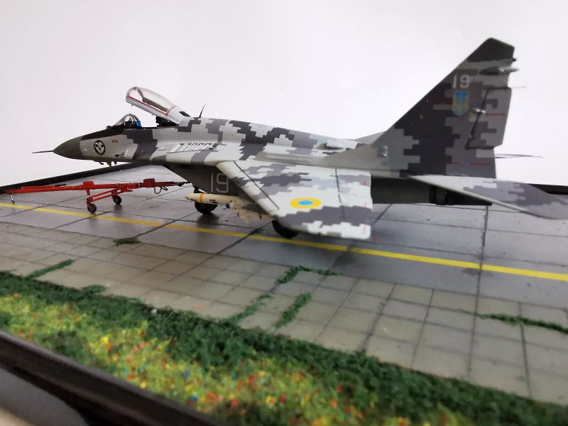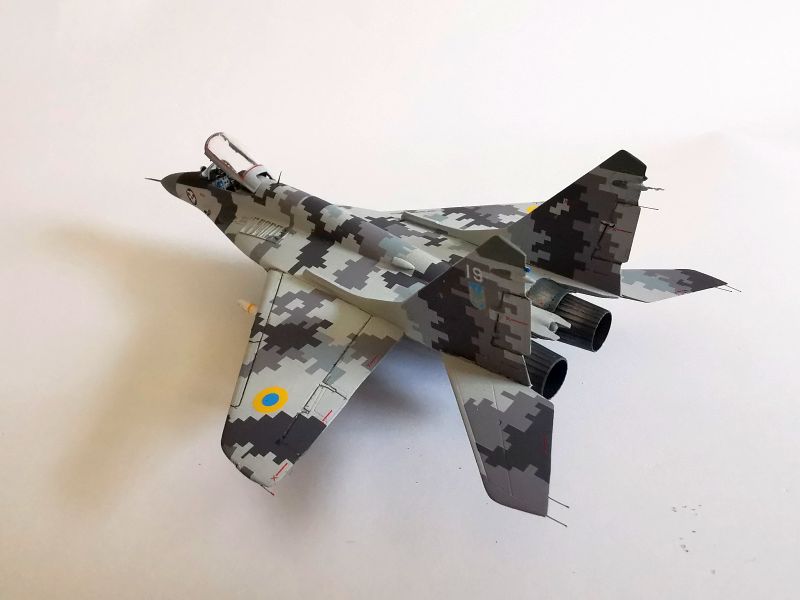 Model MiGa-29 firmy ICM Models okazał się bardzo przyjemny w klejeniu. Wbrew pozorom jest on całkiem nieźle spasowany, dobrze też znosi wszelkie zabiegi waloryzacyjne. Jeżeli ktoś chce mieć model ukraińskiego MiGa-29 za rozsądne pieniądze, to jest to moim zdaniem całkiem dobra propozycja, tym bardziej, że producent zapowiada kolejny zestaw właśnie z pociskami AGM-88. Czy znajdzie się na moim warsztacie tego nie wiem, wiem na pewno, że w przyszłości ukraińskie pixele zagoszczą na moim warsztacie.
