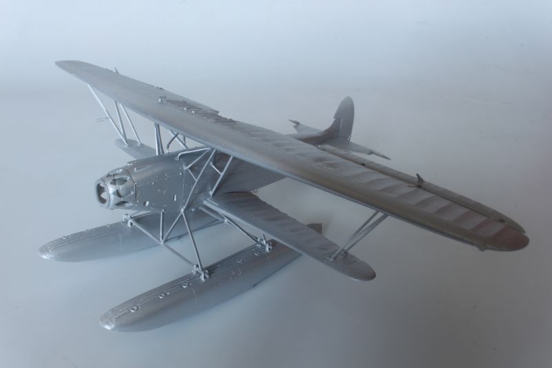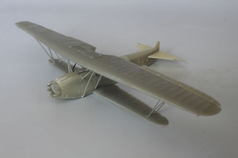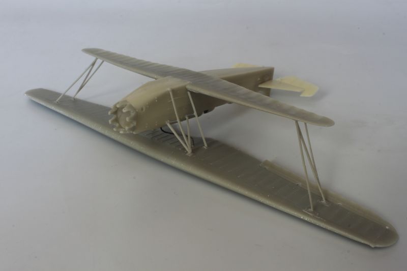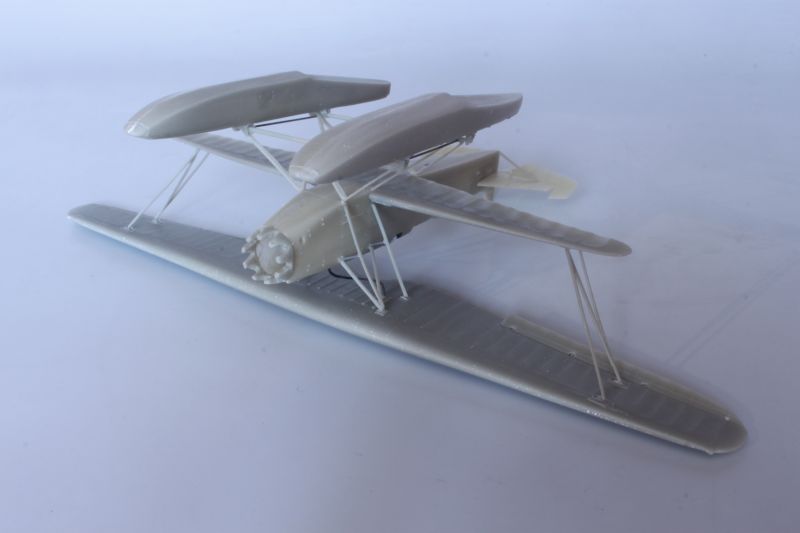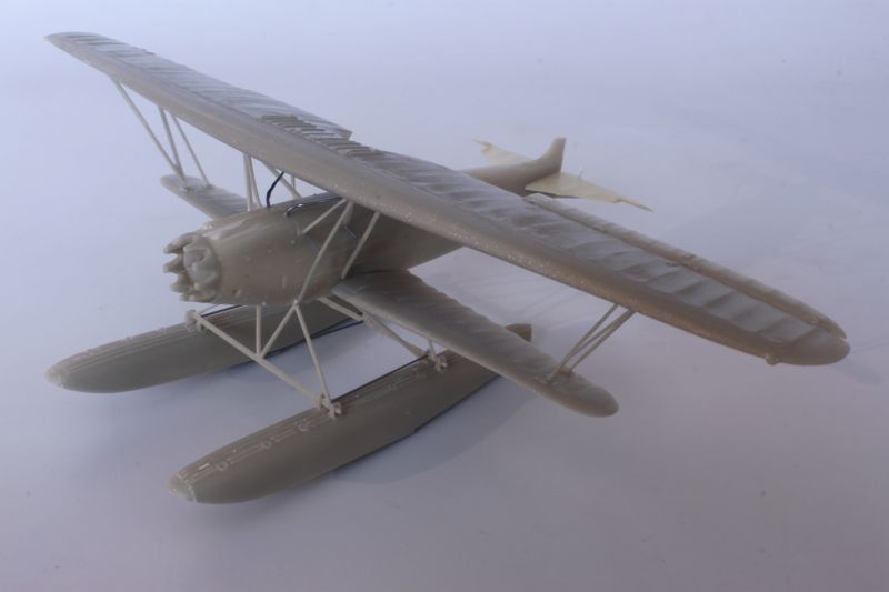 Model tego samolotu w podziałce 1/72 ma w ofercie kilku producentów głównie modeli żywicznych i formowanych próżniowo. Na moim warsztacie wylądował krajowy zestaw firmy Bilmodelmaker TopGun z Gdyni. Po otwarciu pudełka od razu rzuca się w oczy spore wymiary modelu i duża ilość poszczególnych elementów. Ponieważ producent dużą wagę przywiązał do maksymalnie wiernego odtworzenia szczegółów konstrukcji samolotu, model można w zasadzie skleić prosto z pudełka. Do wyboru mamy za to trzy wersje – kołową, pływakową i na nartach. Ja natomiast zdecydowałem się odmianę pływakową i na niewielką waloryzację, wykonaną we własnym zakresie w oparciu o moją modelarską rupieciarnię.