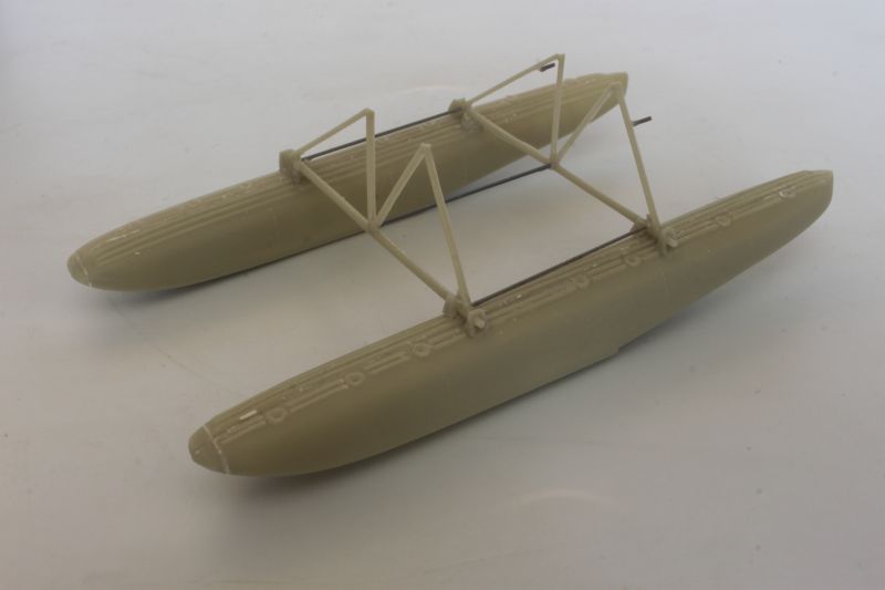 Budowę zacząłem od wycięcia poszczególnych detali z klocków wlewowych oraz ich oczyszczenia. Jak to zazwyczaj bywa w takich produkcjach, zmorą modelarza są bąble powietrza, które trzeba szpachlować, wypełniać itp. W przypadku Fokkera było ich kilka sztuk w łatwych do obrobienia miejscach. Pierwsze co skleiłem to pływaki wraz z wspornikami, nie napotykając na jakieś większe trudności, oczywiście trzeba w takich wypadkach uważać na prawidłowe ustawienie wszystkich detali względem siebie, tak aby model trzymał później bryłę. To co producent sugerował by wykonać z załączonego drutu, ja zrobiłem z polistyrenowych prętów. Nie chciałem za mocno obciążać konstrukcji. Musiałem co prawda kilka razy całość rozklejać i sklejać ponownie, ale taki urok tego typu zestawów.