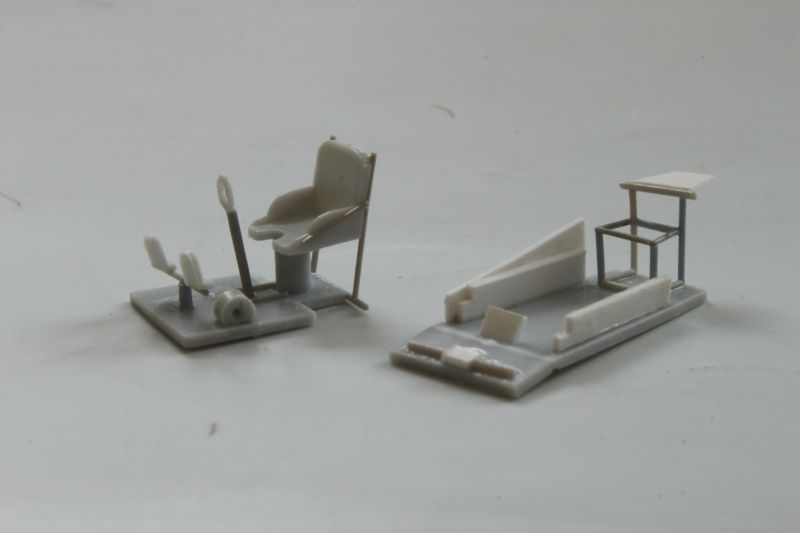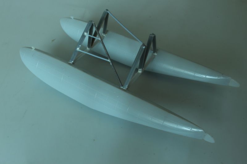 Zakończenie prac nad repliką to wykonanie podstawki imitującej fragment nadbrzeża i wózek do przetaczania. Wykonałem je z polistyrenu o różnej grubości ulubioną metodą „odcinania niepotrzebnych kawałków”. Ponieważ podstawka wyposażona została również we fragment „wody” dołożyłem figurkę pilota, relaksującego się po albo i przed lotem łowieniem ryb na wędkę oraz kilka drobiazgów, które w mojej ocenie ożywiły nieco winietkę.