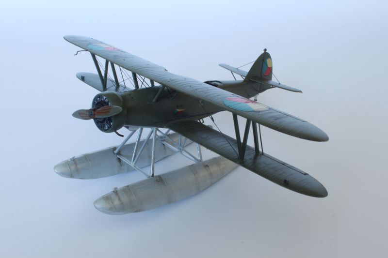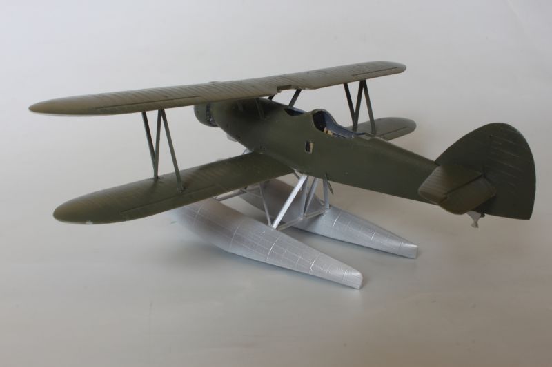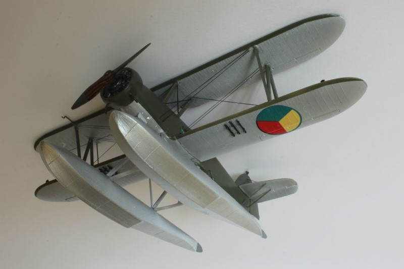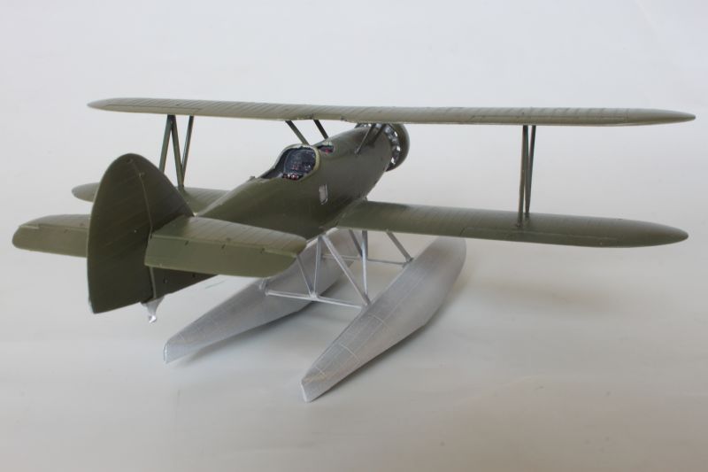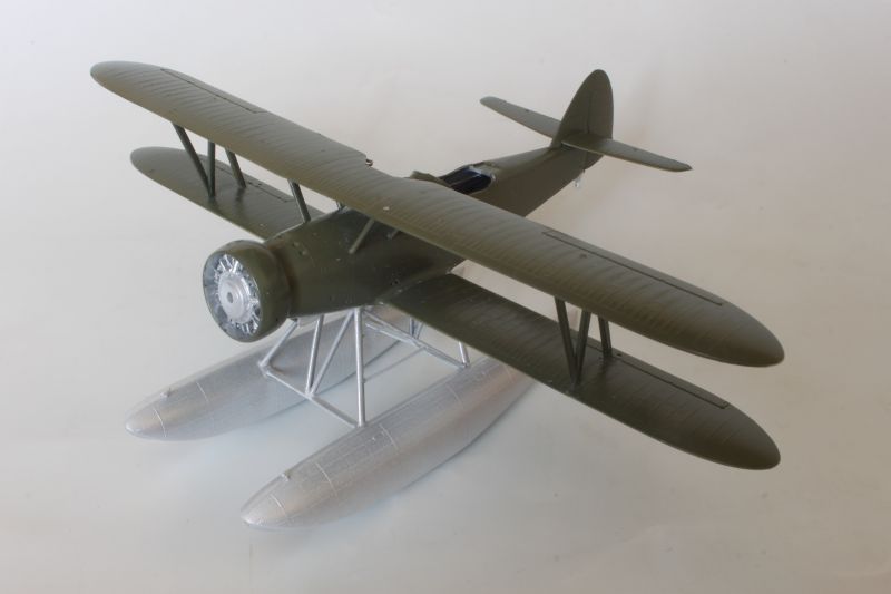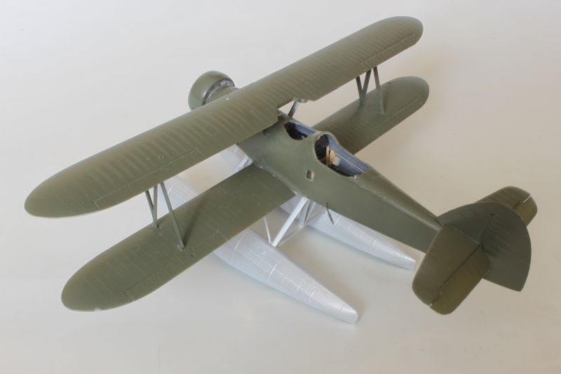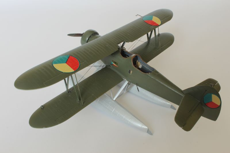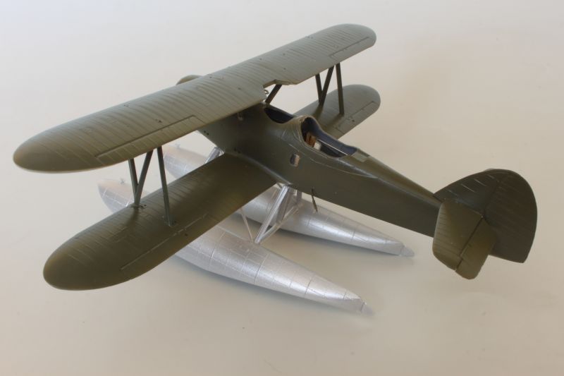 Model z uwagi na dwukolorowy kamuflaż musiałem malować w kawałkach i sklejać w całość dopiero po zakończeniu malowania. Na początek maskowanie kokpitu i podkład w sparyu. Potem model został pomalowany, użyłem farb BilomodelMaker: polischd alluminium - dół kadłuba i pływaki, white alluminium - dolne powierzchnie płatów oraz Polisch Khaki - cała reszta, ten kolor wydał mi się najodpowiedniejszy. Malowanie wraz z maskowaniem zajęło mi około półtorej godziny, nudne staje się pisanie o wysokiej jakości farb producenta z Gdyni. Po zakończeniu malowania, zdjąłem maski, poprawiłem malowanie w kilku miejscach i złożyłem go w całość.